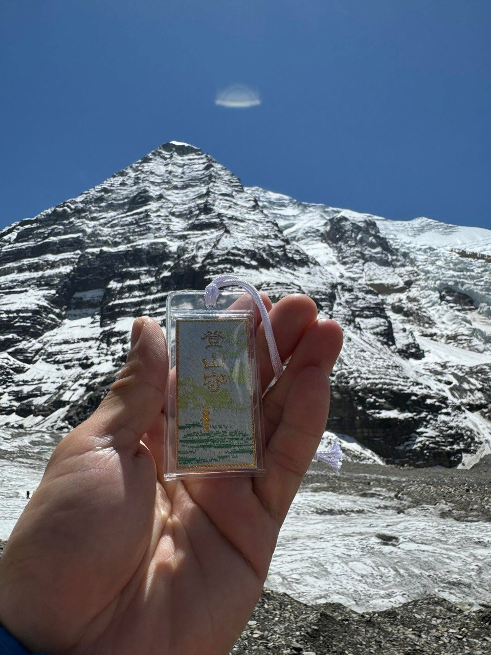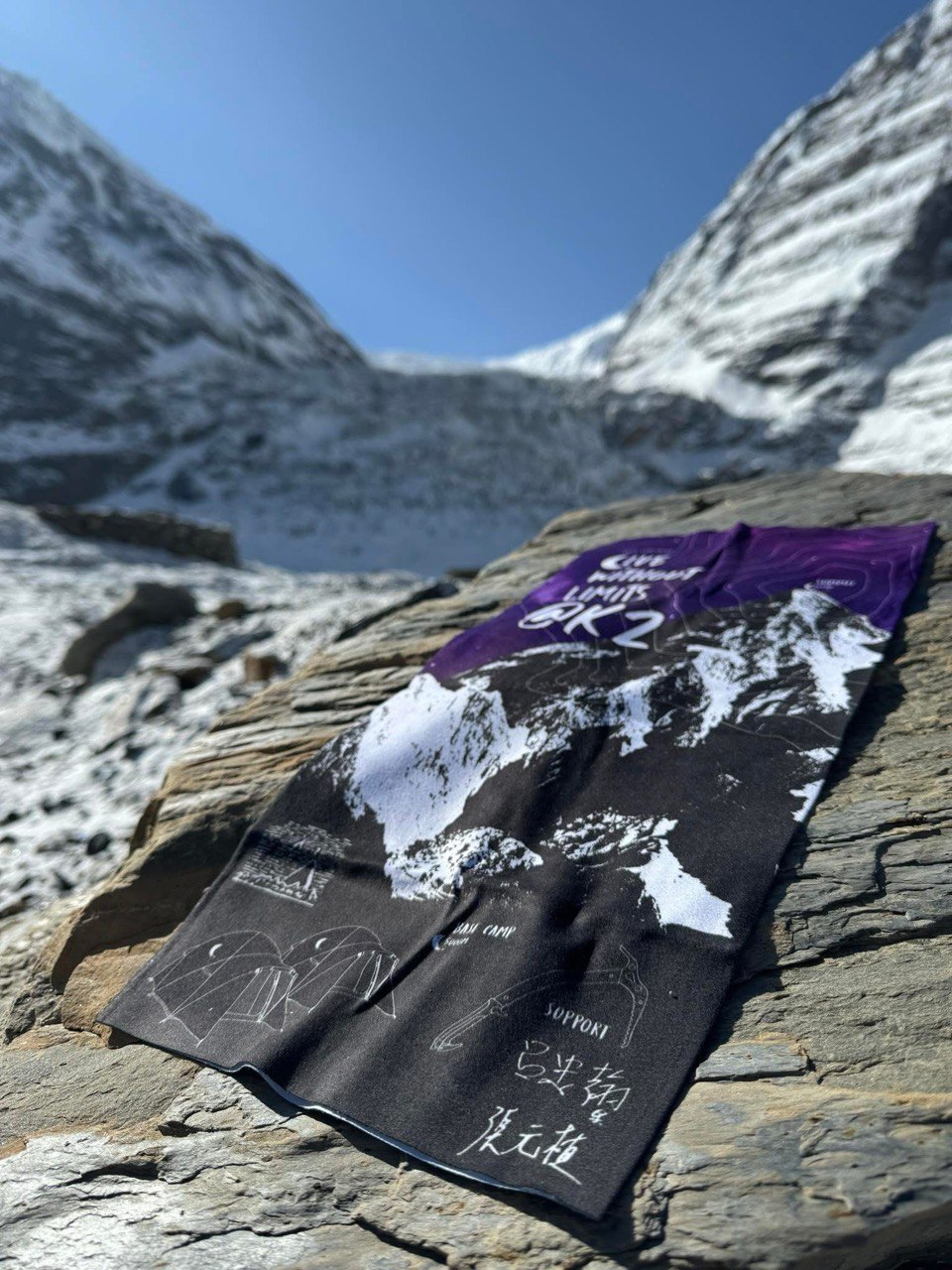 ▲左:每次出發挑戰八千米高峰,都是帶著家人與朋友的祝福出發,圖為他每次出發時會隨身攜帶的登山御守。右:阿果分享,去年曾因摯友張元植的離開而陷入低潮,一度找不到攀爬的意義,今年年初找回初心後出發五度挑戰時,帶著2019年和元植一起攀爬K2的頭巾一起上山,登頂的當下他也在內心和摯友喊話他終於成功了。