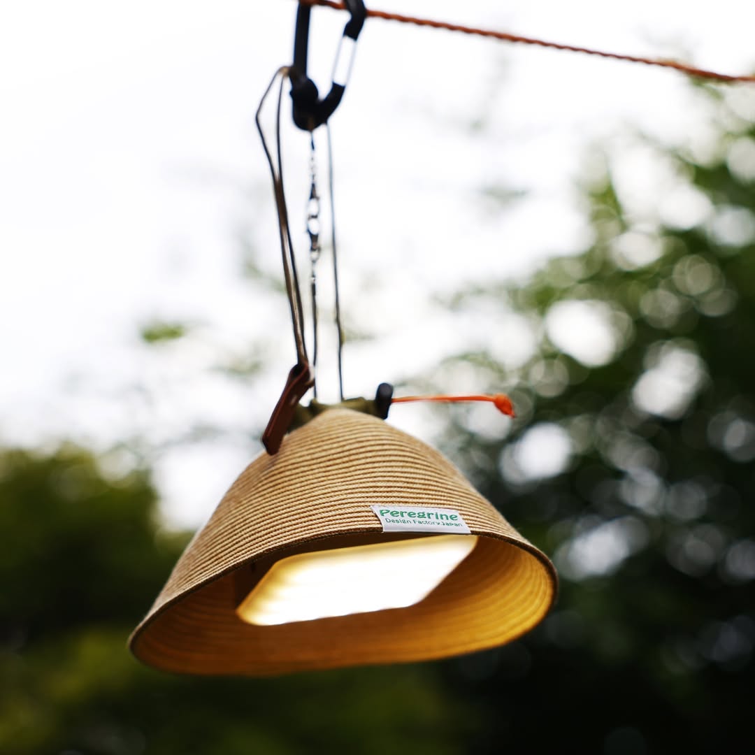 這款燈罩由日本帽子工廠以製帽同等技術製作而成,質感自然溫潤,形狀如同一頂輕巧的草帽,為戶外燈具增添一抹詩意與懷舊感。不論是在露營場、陽台小聚,或是室內一隅,只要將 LED 燈罩上此款燈罩,就能柔和過強的光線,營造舒心放鬆的氛圍。