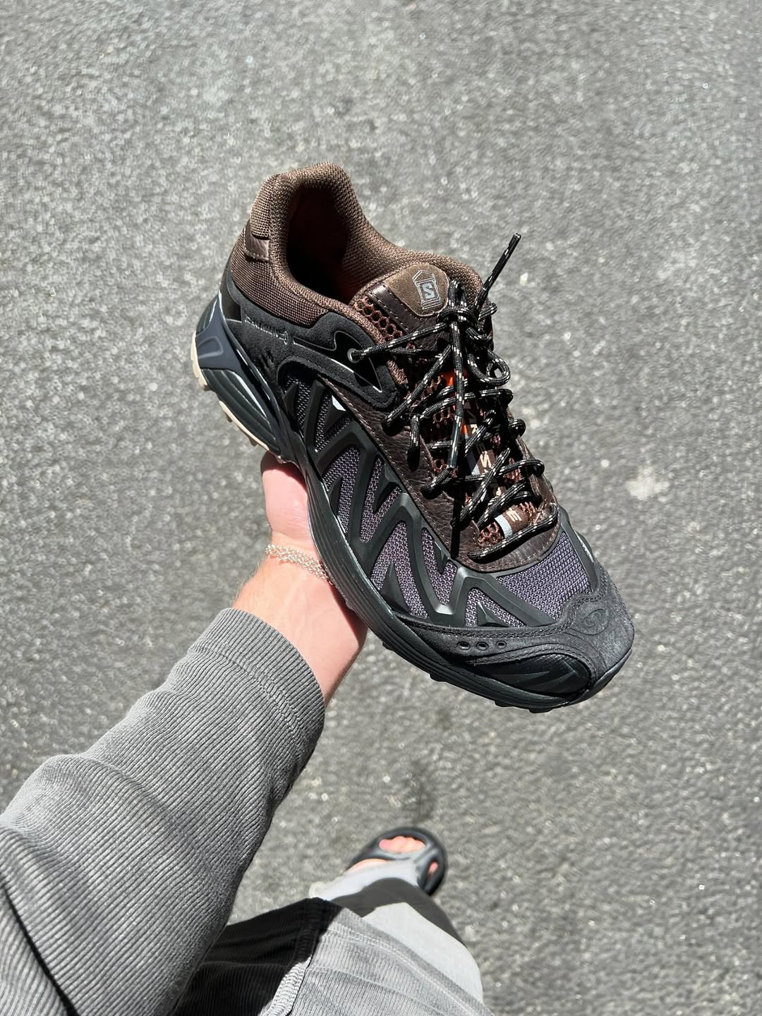 回顧過往,Aries 與 Salomon 首度合作選擇了 Snowclog 鞋型,品牌創辦人 Sofia Prantera 當時便提到,這雙鞋在結構上比大眾對 Salomon 的印象還有更柔軟與輕盈。然而這回聯名的 XT-Whisper 幾乎可說是翻轉了 Salomon 過去為女性設計的輪廓,經過 Aries 之手更轉化為硬核結構的越野跑鞋。