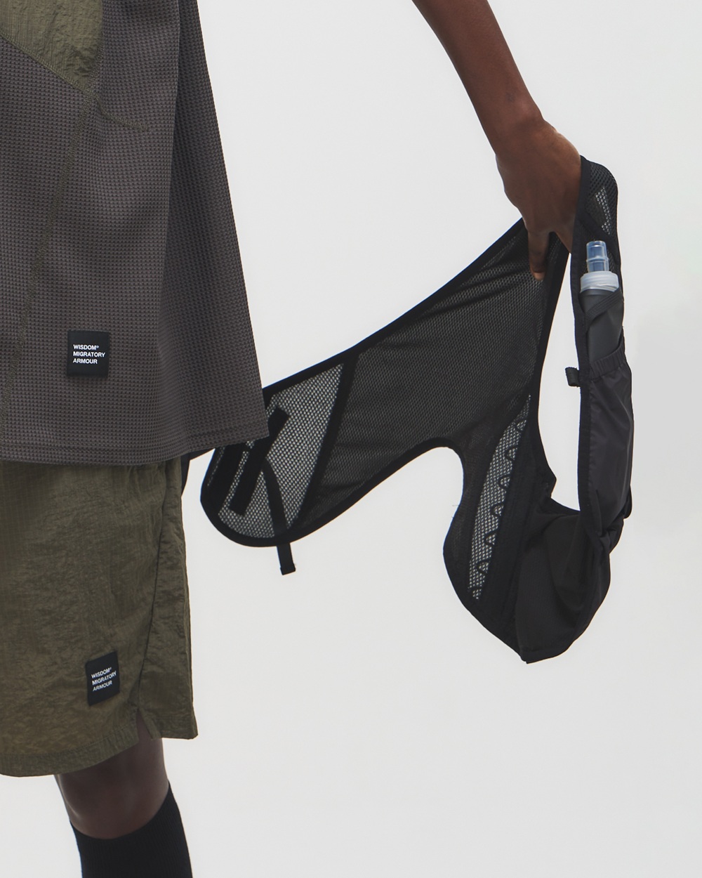 加上同樣有著「輕量抗皺 / 快乾抗撕裂 / 涼感耐磨」的高活動剪裁短褲,為上下身一式三色的組合套裝,作為夏季更通透涼感的運動著用或是變化層次的造型應用都能適應不同城市旅行或戶外環境;加上以野跑裝備需求發想推出改良式野跑背心,帶入裝載小物與水壺等需求考量設計,高活動剪裁兼容了模組化多功收納與隱藏式中層著用,運動型軟水壺為購買背心附贈。