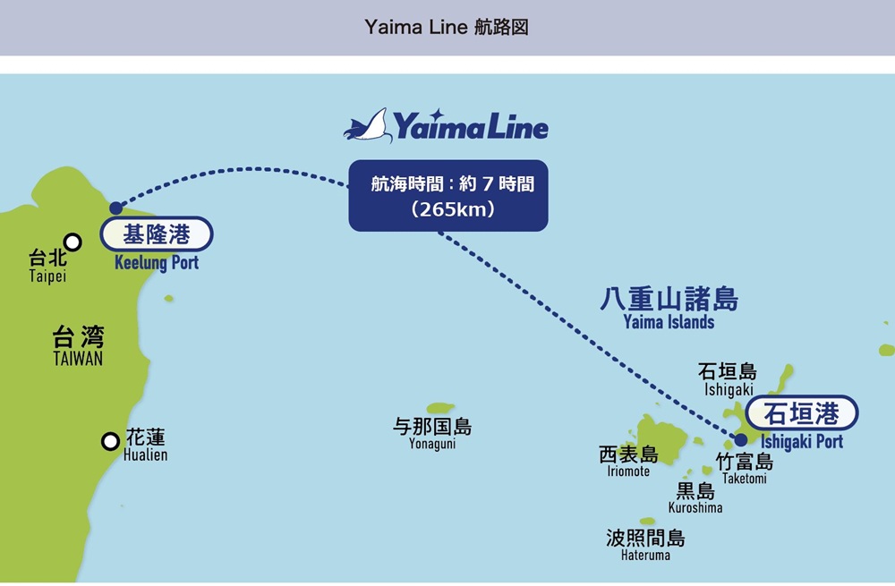 YAIMA 丸號「基隆—石垣島」定期渡輪確認在九月啟航,該航線委由華岡集團經營,預計是夜間航行約七小時,預估早上 7 點 30 分進石垣港碼頭,8 點下船。