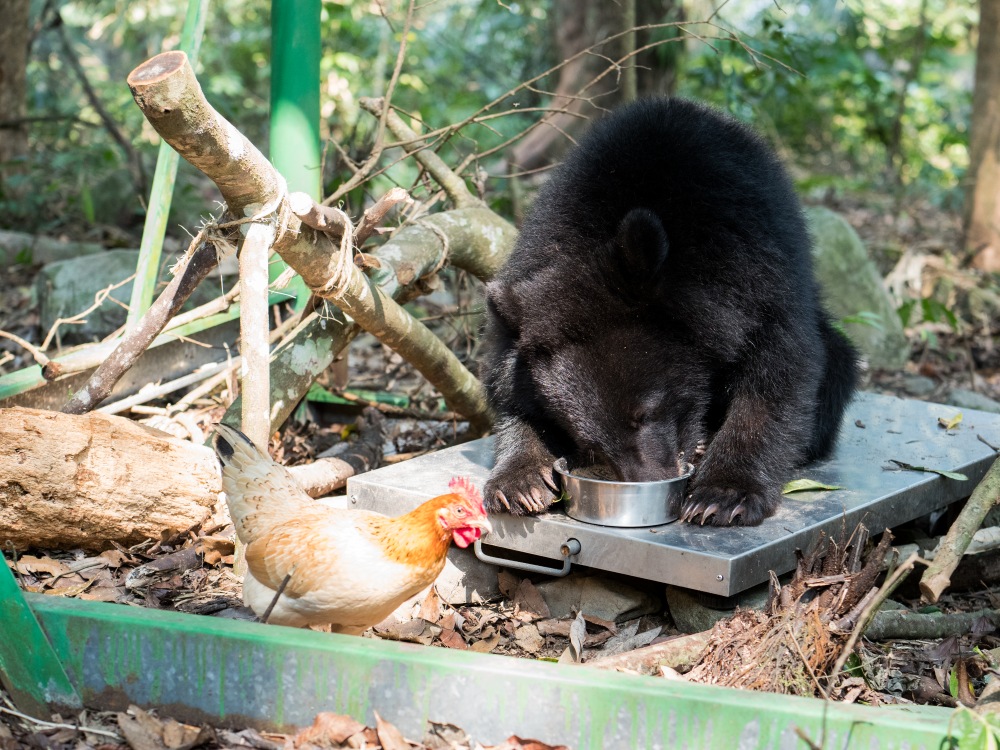 但在無奈之外,也有讓人滿懷希望的片刻。例如曾經協助照養一隻失親幼熊妹仔,協會小心設計食物內容,既要符合牠雜食的天性,又避免牠過度依賴人類。有民眾寄來乖乖,想讓小熊乖一點,讓照養成員看了會心一笑。同時他們也會放鞭炮、射塑膠子彈,用負面制約減少人熊接觸,希望讓牠理解,與人類太過親近不是一件好事。「我們把牠當自己的小孩,還會放體重計在牠吃飯的地方,看看牠長多胖。」