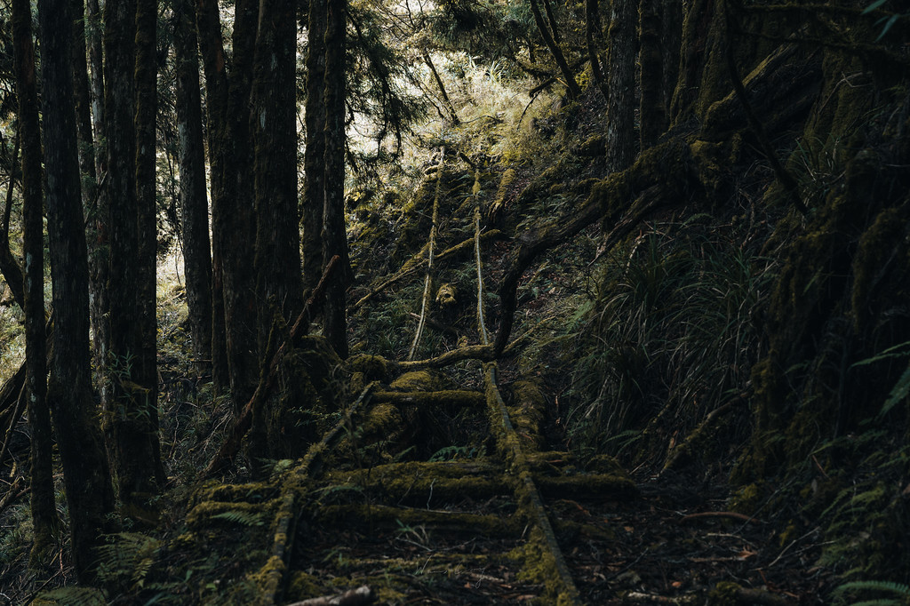 他開始查資料,包含前輩的造訪紀錄,還有林業及自然保育署拍攝的紀錄片《在森林中。嵐山工作站》,越查越覺得這地方像是一段被掩蓋的記憶。原來,嵐山曾是伐木鐵道系統中的一站,肩負著運輸原木的任務,活躍於民國七十年代的林業產業。隨著伐木政策終止,鐵道被廢棄、工作站人去樓空。如今只剩下一些零散的遺構躲在山林之中,似乎在等著某個人重新發現它的存在。