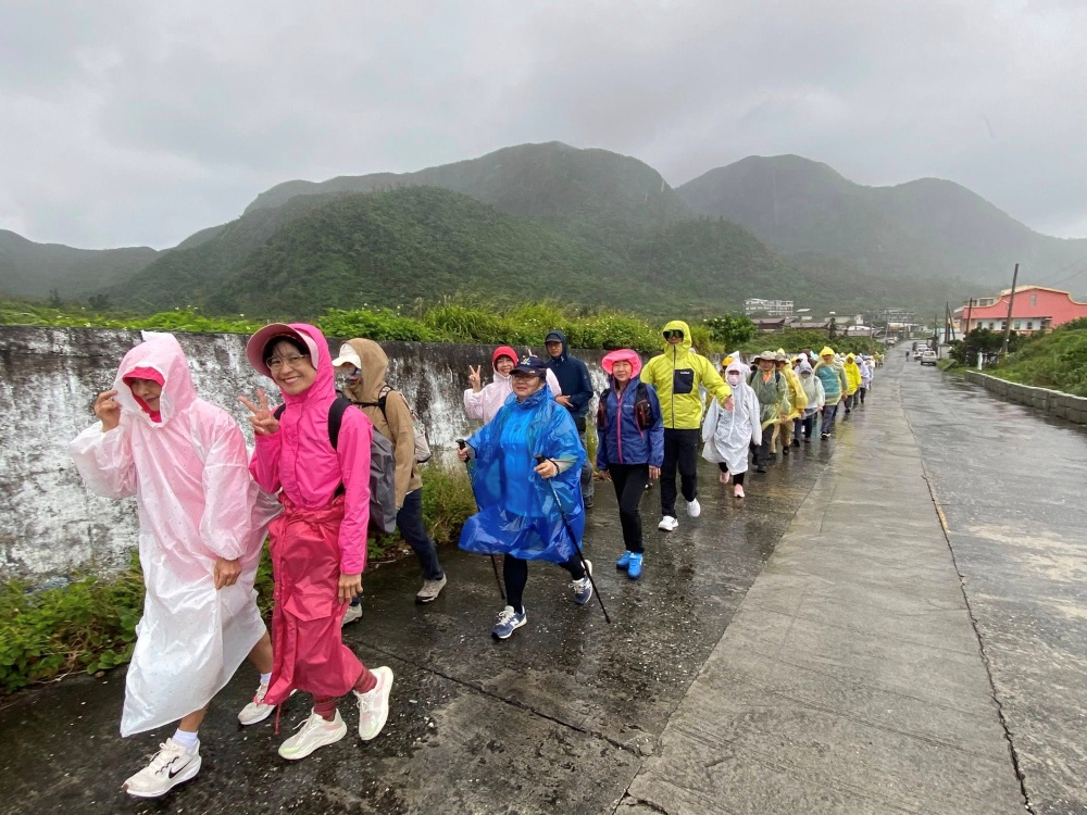 那不是一條容易走的路,但正因為艱難,才更顯珍貴。第 100 梯,為紀念過去長年服務蘭嶼的紀守常神父而走,隊伍特別拜訪了島上的數座教堂。第二天清晨突遇大雨,大家以為行程會取消,直到聽見簡老師淡淡一句:「穿雨衣,繼續走吧。」竟引來全場歡呼。那天,近百人冒雨走在環島公路上,連他自己都感動得說不出話。