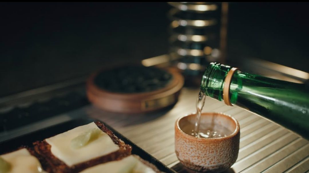 麻油海苔起司燒這道非常適合下酒,濃郁香氣加上奶香鹹味,口感厚實,搭配柔和甜潤的甘口清酒, 能平衡麻油與起司的濃重,配上海苔香,整體層次非常和諧。