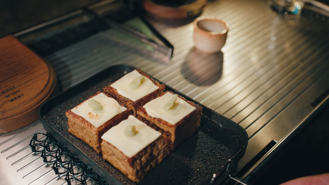 - 起司微微融化後,最後點綴一抹山葵,增添辛香與清爽感