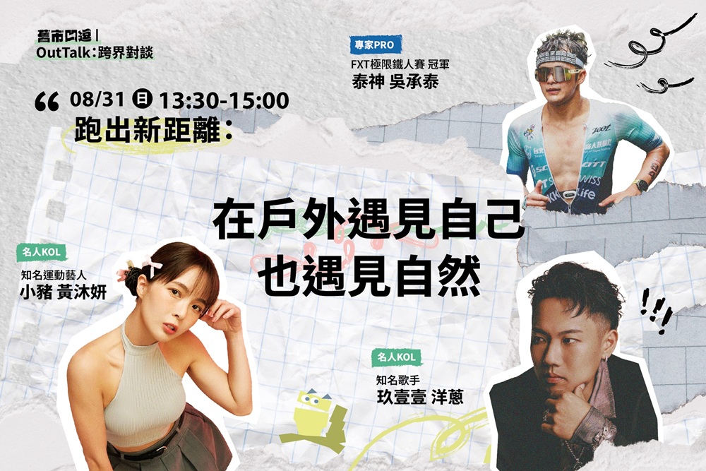 今年更擴大影響力,首推「OutTalk:跨界對談」,鎖定「減塑行動、山林探索、戶外生活、友善海洋」四大主題,召集10組跨界講師陣容,包括:知名藝人玖壹壹洋蔥、小豬黃沐妍、FXT 極限鐵人賽冠軍泰神 吳承泰、旅日 YouTuber 阿倫、頭城小夫妻 小量與大海旅人吳威毅…等。四場深度對談以「專家PRO」與「名人KOL」同台對話的形式,內容從運動表現到山林實踐、從海洋保育到日常生活,帶來多視角觀點。邀請大家重新詮釋美好,感受生活與環境之間的共存與共榮。