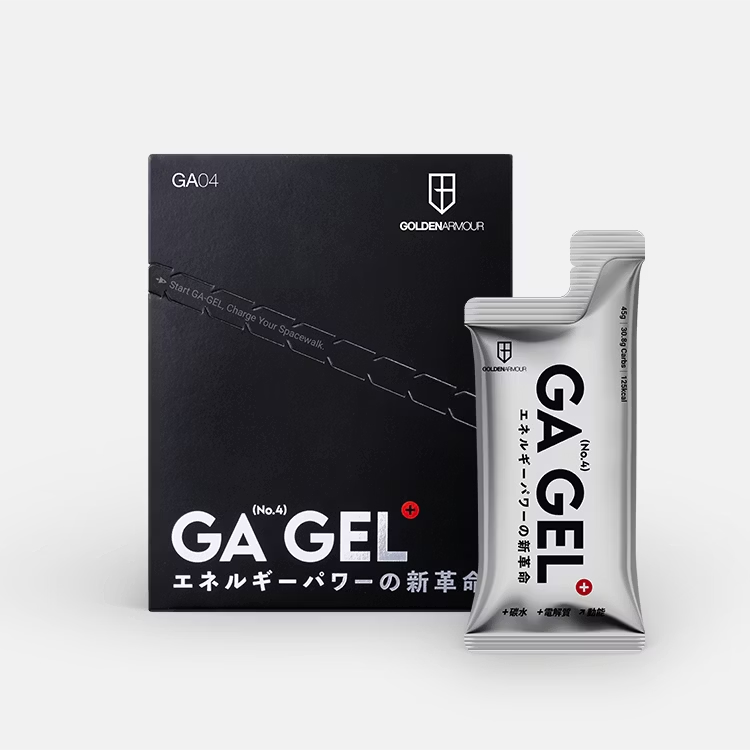 來自台灣的 GA 黃金甲太空能量膠,是很多台灣菁英運動員的指定愛用能量果膠,一包擁有 30g 的碳水,可以補足半小時至一小時的能量需求,更以五種複合碳水,葡萄糖、果糖、麥芽糖漿、玉米糖膠、麥芽糊精組成,讓能量釋放更平穩。
