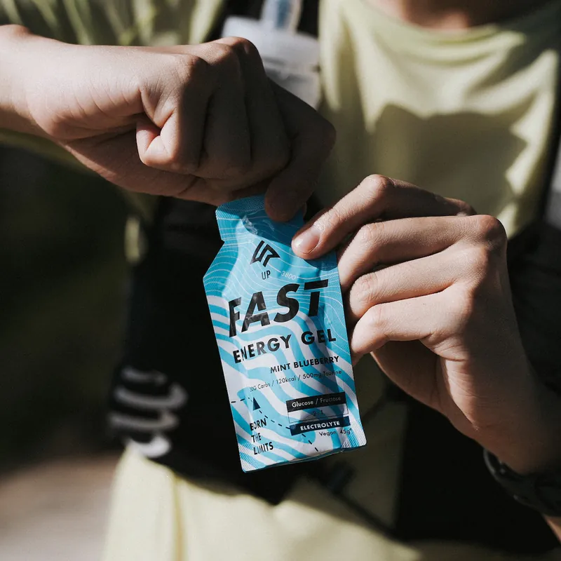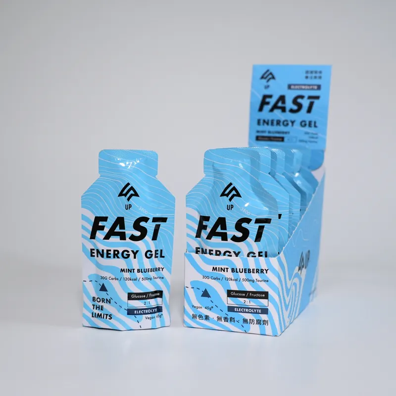 最後推薦這款為 UP FAST 能量果膠推出的沁涼藍莓風味,可以算是最兼具效能與口感的一款,採用 2:1 複合碳水配方,吸收效率快、腸胃負擔更小,每包含有 30 克碳水與 120 大卡熱量,對長距離運動來說實用性非常高。