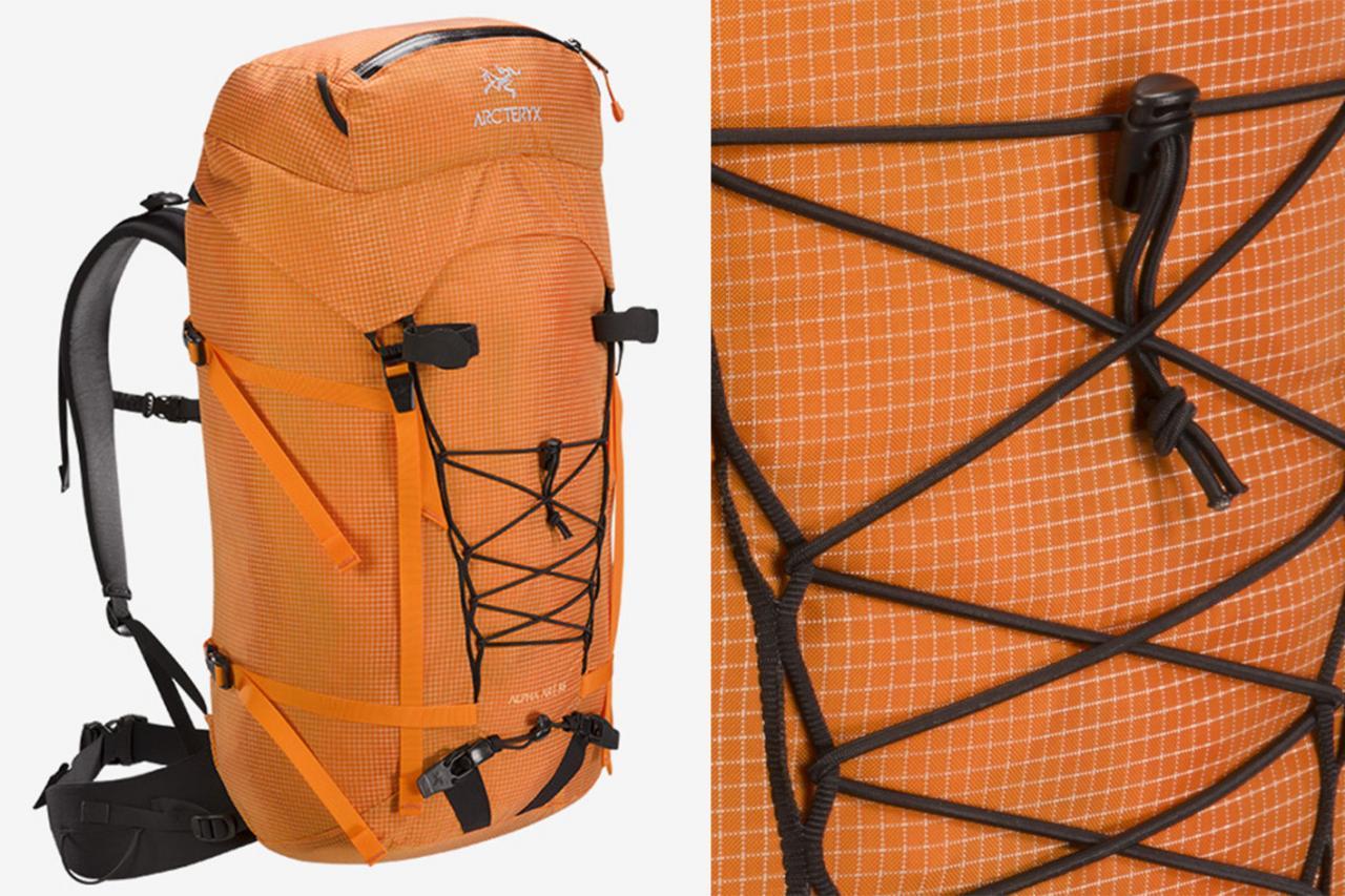新的登山包 Alpha AR 35 採用創新聚合物 — LCP,生產出來的面料,不只非常堅韌,而且超輕,具有高抗撕裂性與耐磨性,可應付極端溫度,甚至阻燃!