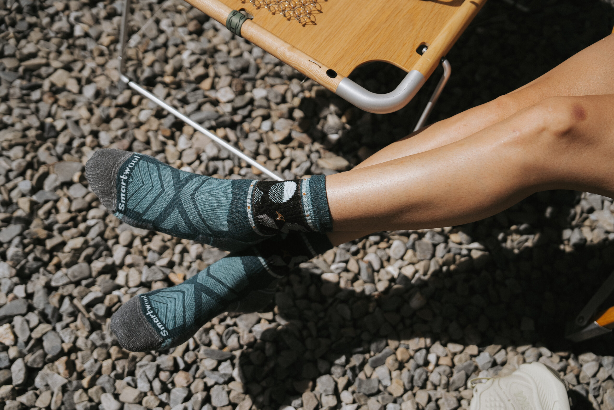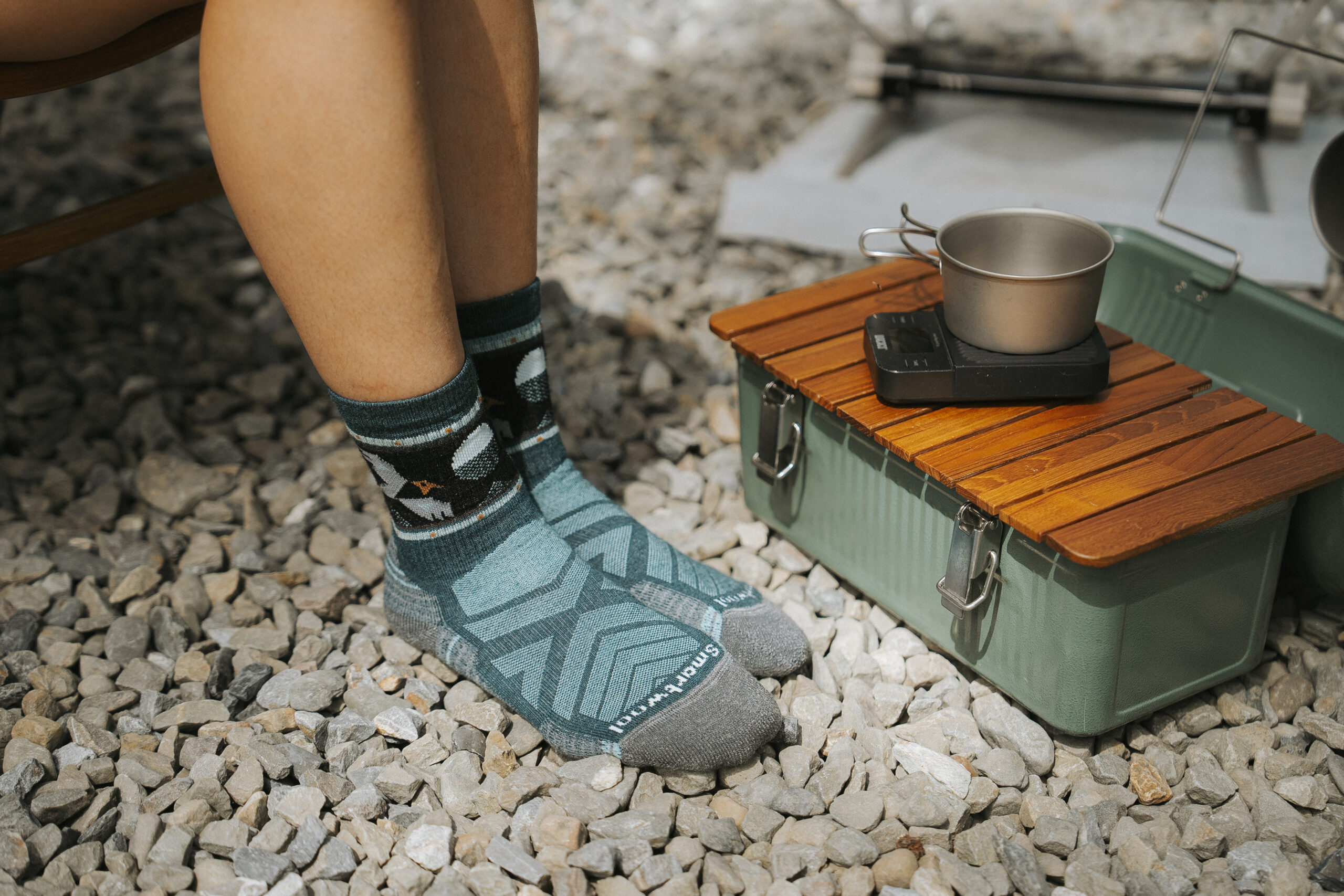露營的過程中,我們一邊沖煮著咖啡,一邊聽她聊著單人的徒步登山經驗,近期的一次到能高安東軍五天健行,她表示自己只帶了兩雙 Smartwool 羊毛襪就非常夠用,貼身的底層衣物也是選擇 Smartwool 的羊毛衣。「Smartwool 一直都是我的上山必備,特別是長天數的行程,真的要穿的舒服,才有餘裕去專注感受大自然的純粹與挑戰。」
