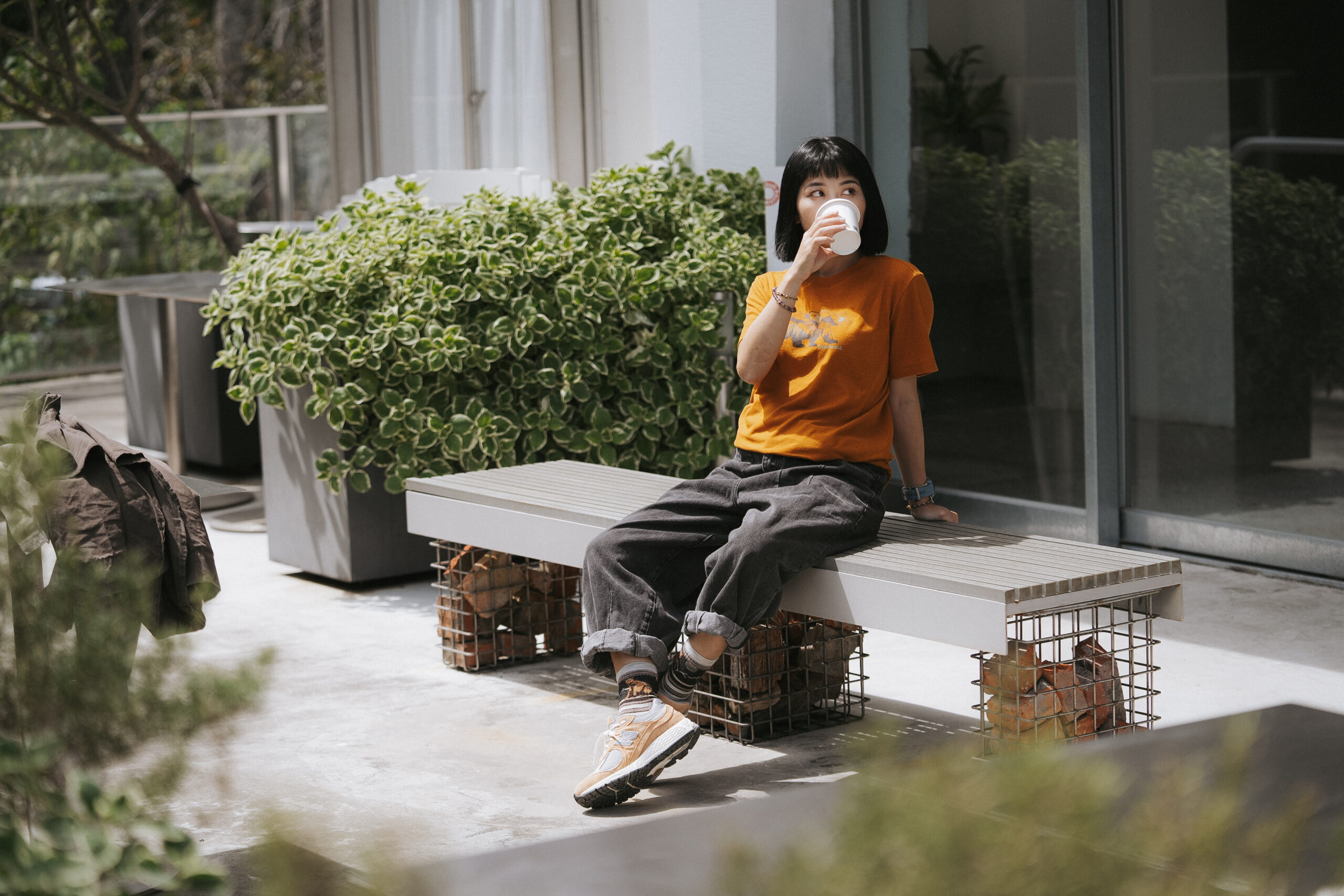 在咖啡香氣和午後微光中,Sara 身上的 Smartwool 依舊保有山林的氣息,像是一種能自由穿梭於城市與山野之間的節奏,把「能入山,也能入城」的裝備哲學延續到生活的每一刻。