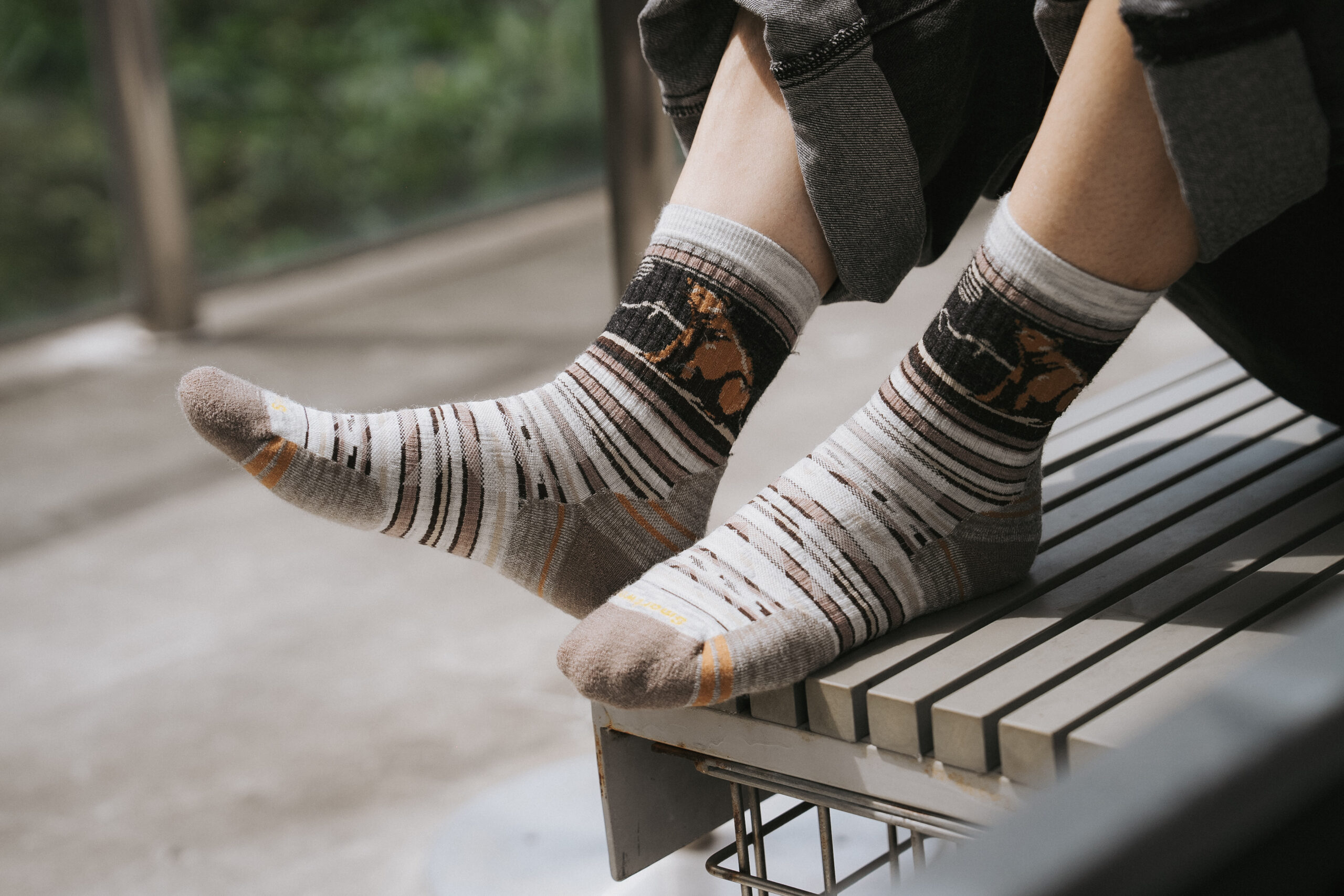 訪談過程中,Sara 一邊分享她的日常節奏,一邊把腳翹起來輕鬆晃動,腳上正是她這回最喜歡的單品之一,Smartwool 的機能戶外局部輕量減震中筒襪,以 54% 美麗諾羊毛、43% 尼龍與 3% 彈性纖維編織而成,不僅延續了羊毛的天然調溫與抑臭效果,還加入 4 Degree™ 四向彈力合腳系統 與 Indestructawool™ 耐磨科技,即便從山林轉換到日常生活,也能維持穩定貼合與耐穿度。