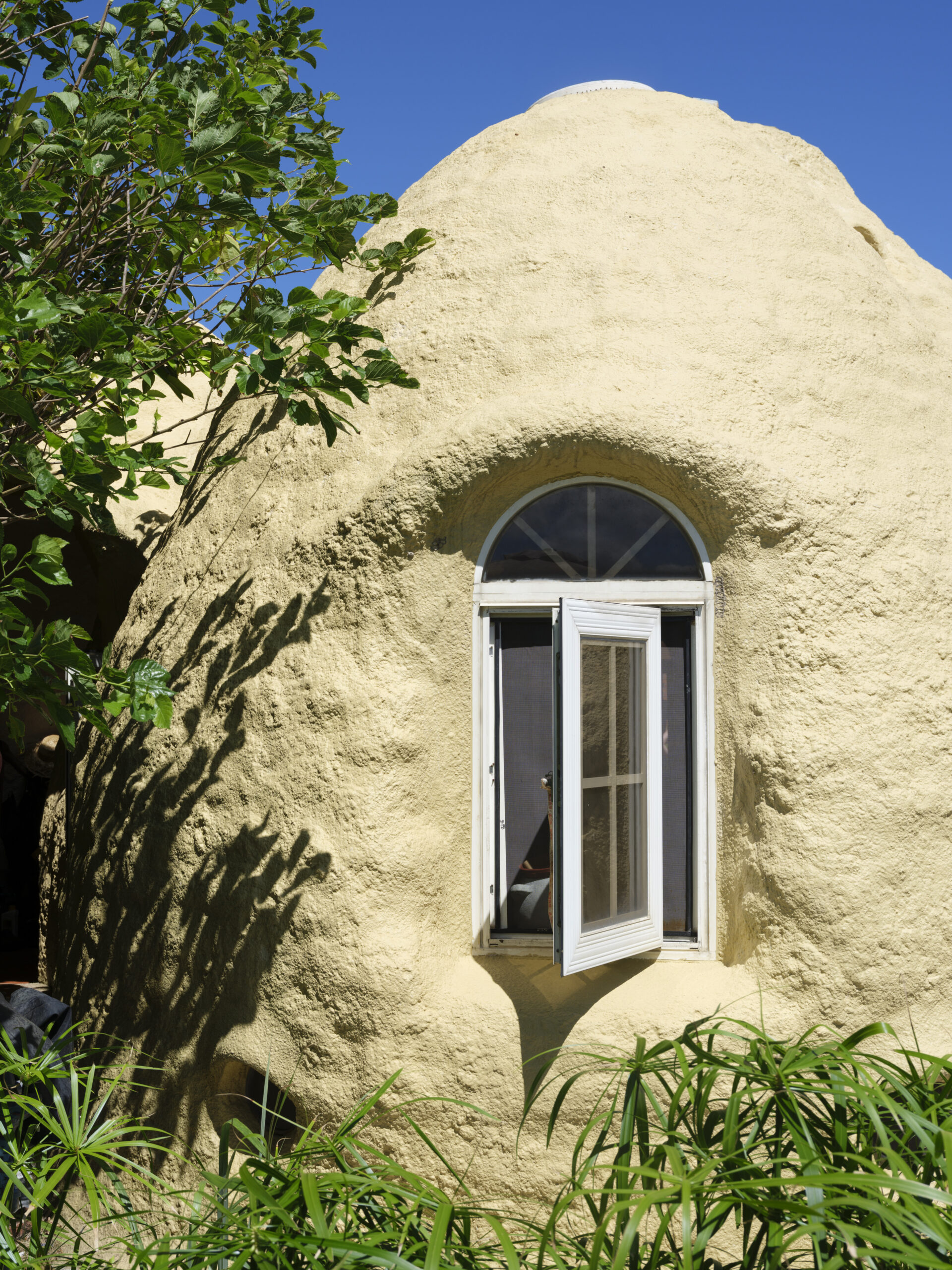 一直到 2008 年,何俊賢的「度咕屋」才真正落地,米黃色的外型,圓潤的屋頂,遠看彷彿來自異星球的庇護所,而這座屋子的設計理念也相當耐人尋味。