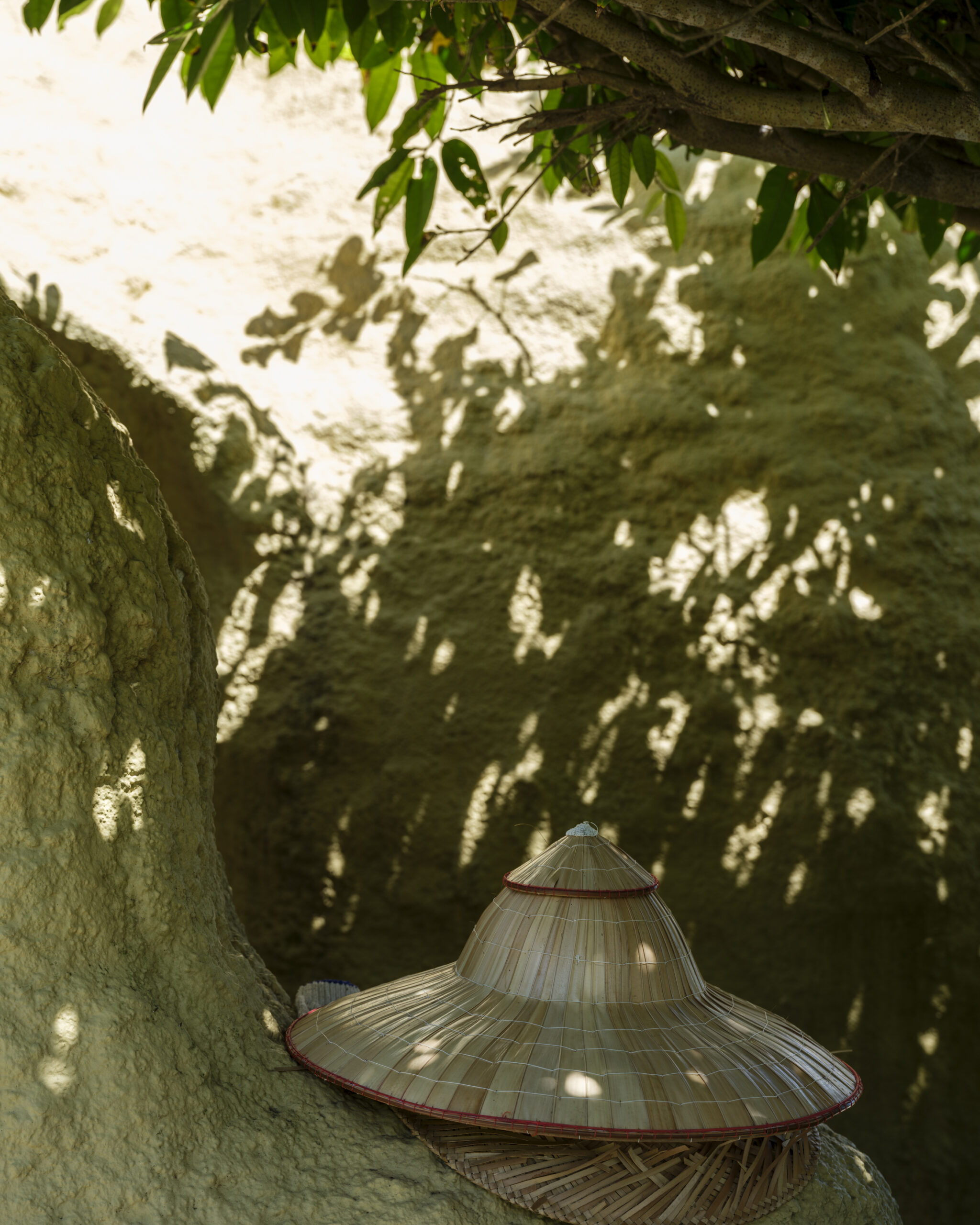 從一開始,何俊賢就決定要用自己的雙手蓋房,找來了當年的幾位學生們,一行人從搬磚、契石頭道築牆,在豔陽高照的烈日下,日復一日的做工。「很多學生幾乎是們這輩子第一次做粗活,也是唯ㄧ一次。」何俊賢說,做工的過程中,從來沒有標準方法,如果目標是將石牆內縮三公分,他讓學生們不靠尺量,也沒有計算公式,而是要他們憑著直覺去體會空間感,用最原始的手感堆疊出石牆,呈現不完美對稱卻帶著溫度的樣子,正是他心目中理想的度咕屋樣貌。