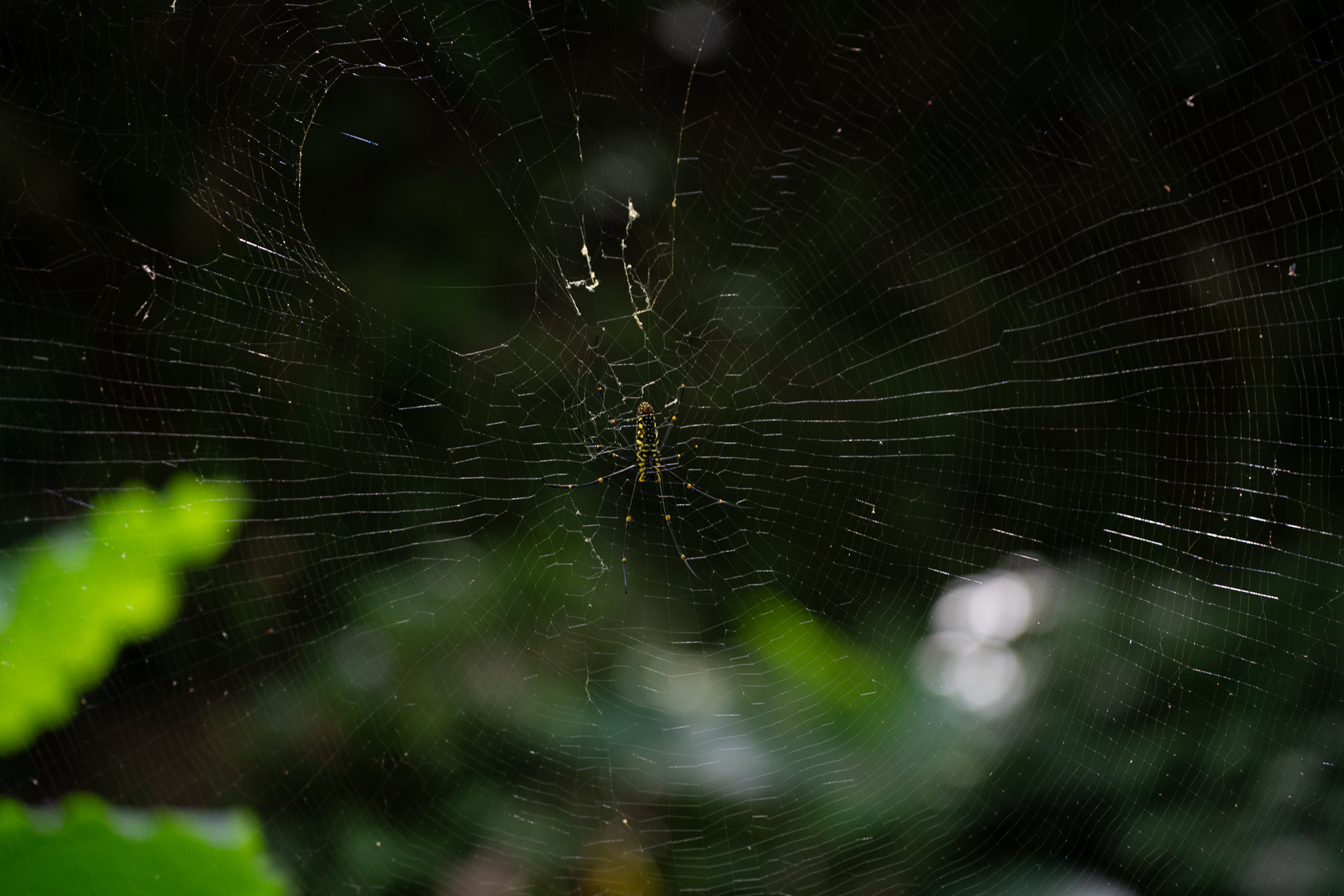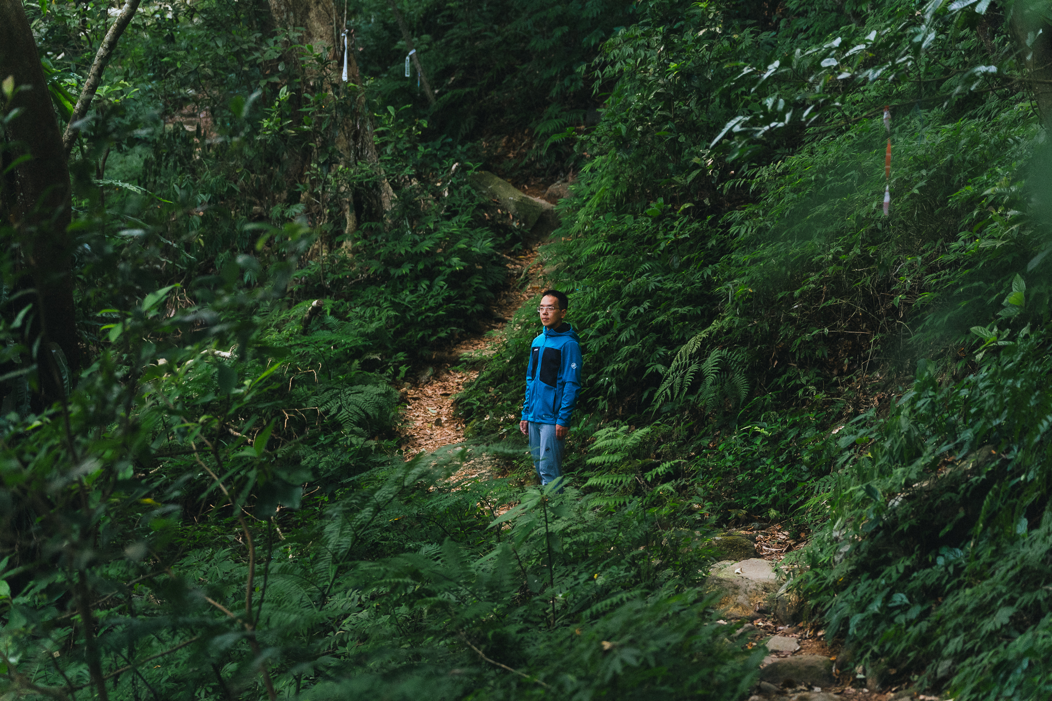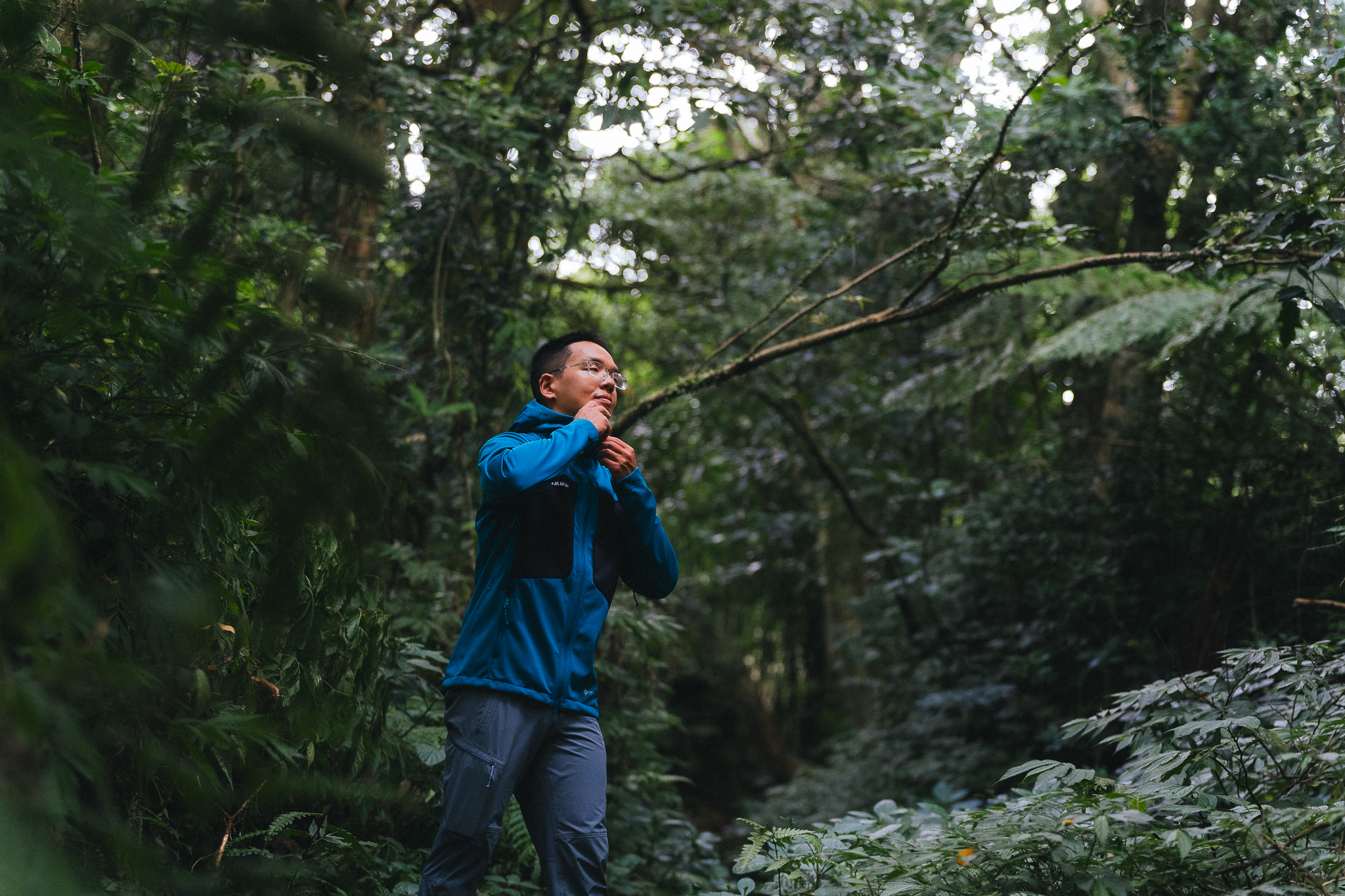 一路上,我們沿著荷蘭古道往北五指山走近兩個小時,只見景淮從未拿出地圖或手機,卻在每個岔路口毫不猶豫地判斷出正確方向,途中我們遇見許多稀有的蕨類和蜂群在林蔭間盤旋,還一度差點撞上人面蜘蛛結出的大網的瞬間,景淮都能用一種像朋友聊天的語氣訴說著它們的習性與脈絡。