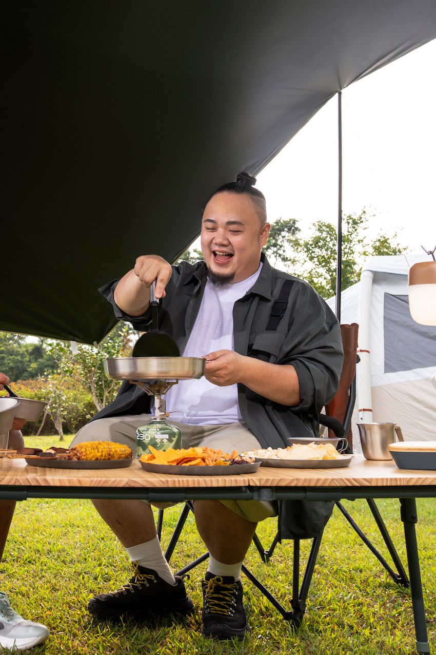 除了全台滿檔的「野迪祭」活動,迪卡儂這次更邀請大淵與美麗本人公開露營私房好物清單,從懶人必備到時尚穿搭一次收齊!熱愛輕鬆氛圍的大淵,主打「露營也要 Chill」哲學,推薦四人房充氣帳篷,免組裝,打開、充氣 10 分鐘內搞定,和三五好友開啟一場愜意露營派對,還有秒速充氣的床墊,隨時想躺就躺,還享有 10 年保固超划算;他笑稱:「老鄉必備,露起來才夠爽!」