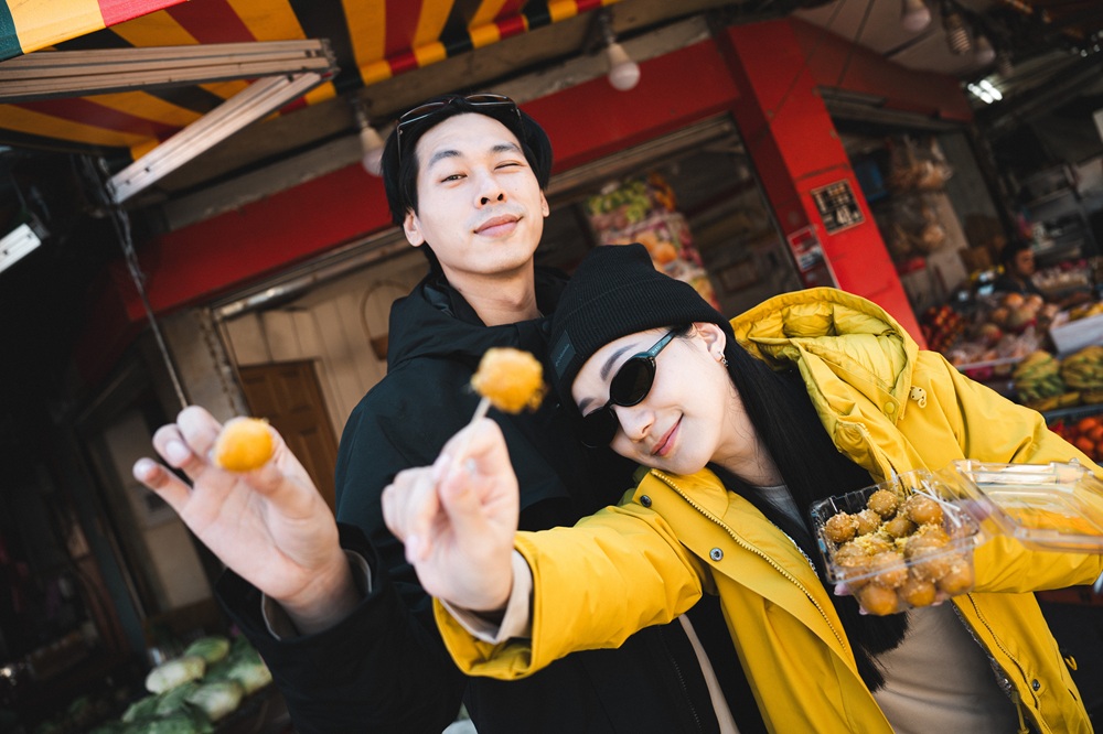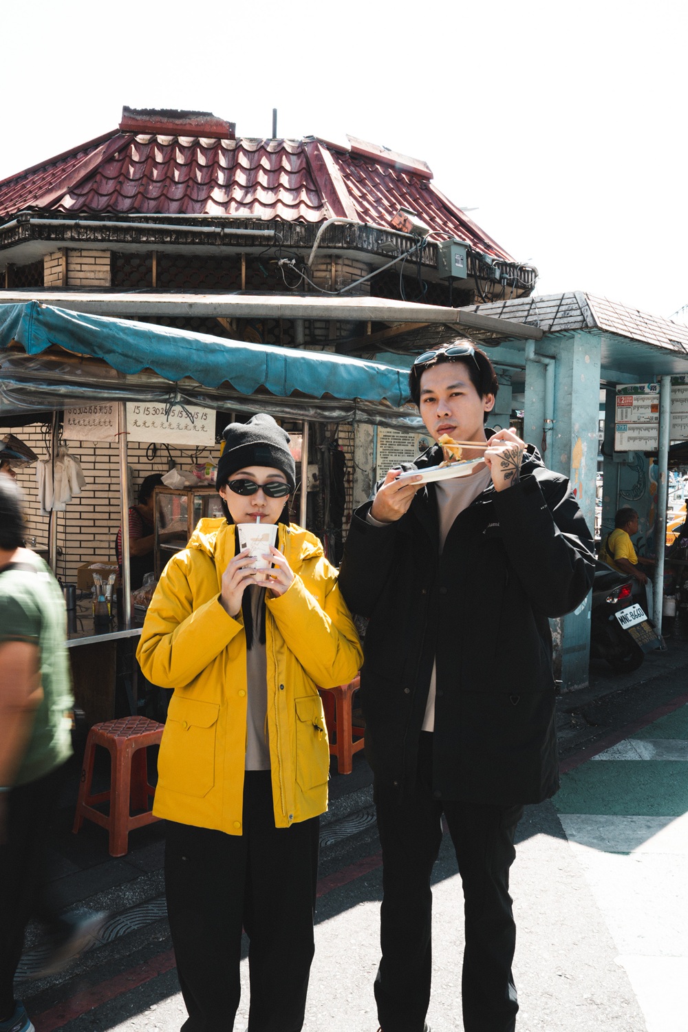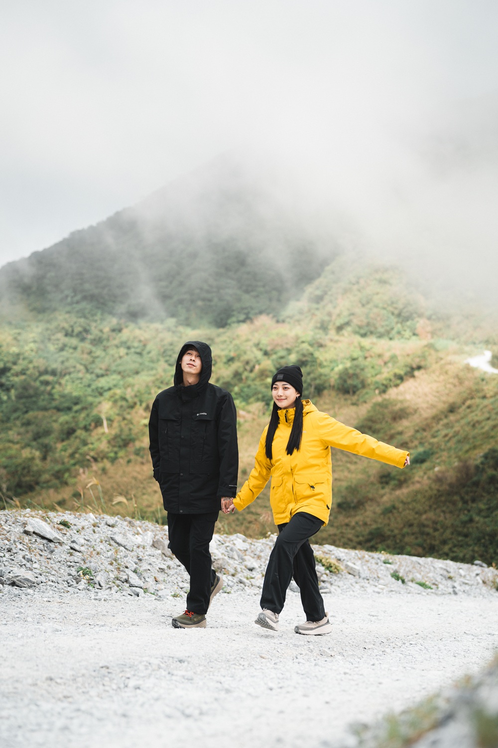 他們身上的穿搭來自 Columbia 黑牌 Transit 系列,結合戶外元素與現代機能,正好符合這種自由不拘的旅程節奏。