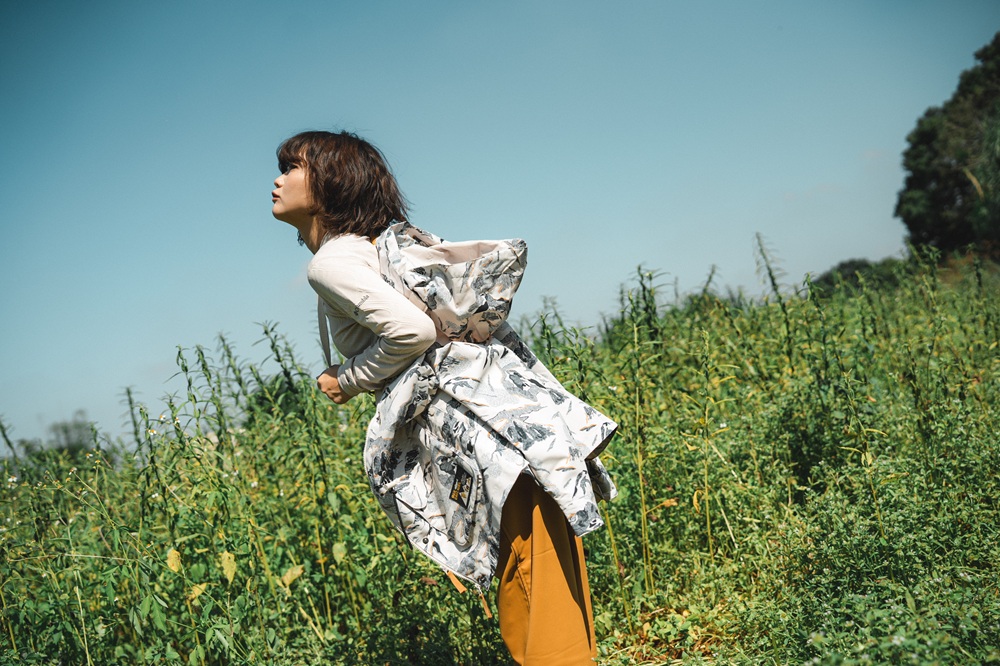 山裡的寧靜與城市的午後並存,就像她身上那件兼具機能與風格的外套,讓生活在不同地景間自由轉換,也讓她永遠走在自己的節奏裡。