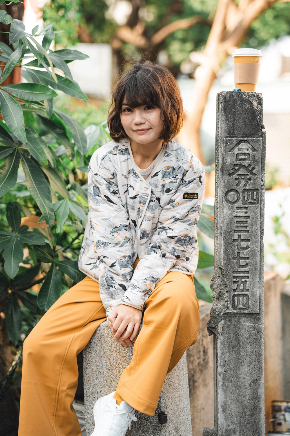 從山徑走回城市,停在審計新村的午後巷弄裡。陽光灑在舊牆上,她坐在階梯邊,靜靜喝著咖啡。對她來說,城市與自然並不衝突,兩者都是生活的一部分。「我在都市裡會看貓的狀態來判斷一個社區好不好。看到貓很自在的地方,那裡通常也住著溫柔的人。」她笑著說。