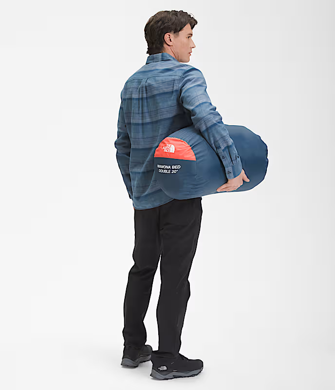 The North Face Wawona Bed Double Sleeping Bag 是一款提供雙人舒適體驗的入門級選擇,設計簡潔,兼具實用與舒適,整體採用 生聚酯纖維作為填充與外層面料,延續 The North Face 一貫的環保理念,標示溫度為 -6°C,在春秋氣候或微涼的天氣,依然能維持不錯的保暖表現。
