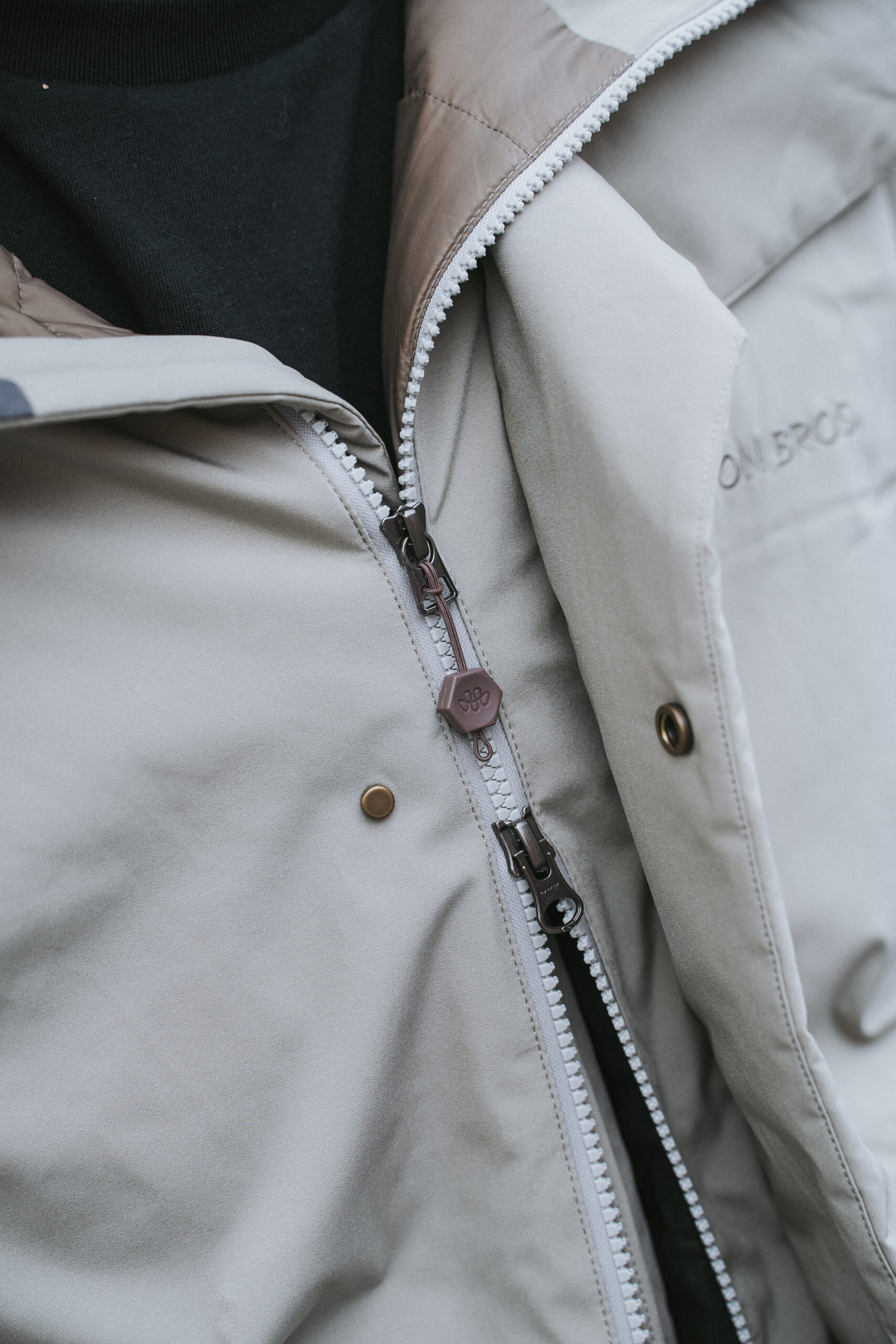領口特別加入羽絨衣領設計,能有效阻擋冷風並鎖住暖空氣;袖口的羅紋結構則貼合手腕,防止冷空氣從袖子灌入,使整件外套在防風、保暖與活動度之間取得罕見的平衡。前方採雙向拉鍊搭配防風雨擋片,即便是下雪或冷風都難以滲入,同時保留穿脫的便利性與透氣調節的空間。