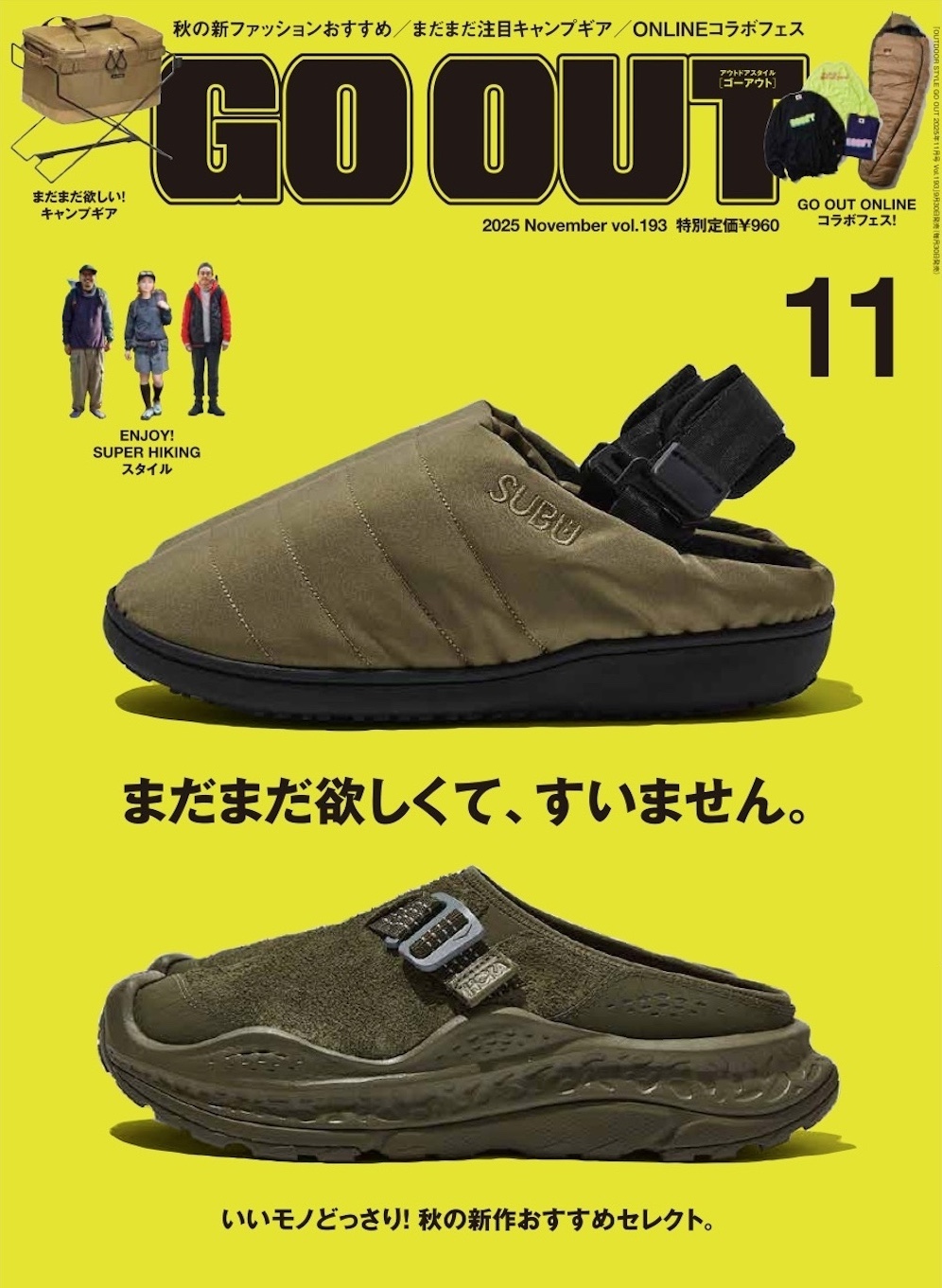 《GO OUT(ゴーアウト)》由日本三榮出版創立,是日本戶外文化中極具影響力的風格媒體之一。多年來始終站在戶外潮流的前線,成為許多玩家與品牌持續關注的重要指標。雜誌內容橫跨戶外穿搭、機能裝備與最新趨勢,同時走進露營、登山、音樂祭等真實現場,並透過與各大品牌的合作,持續拓展戶外機能與時尚美感之間的連結。