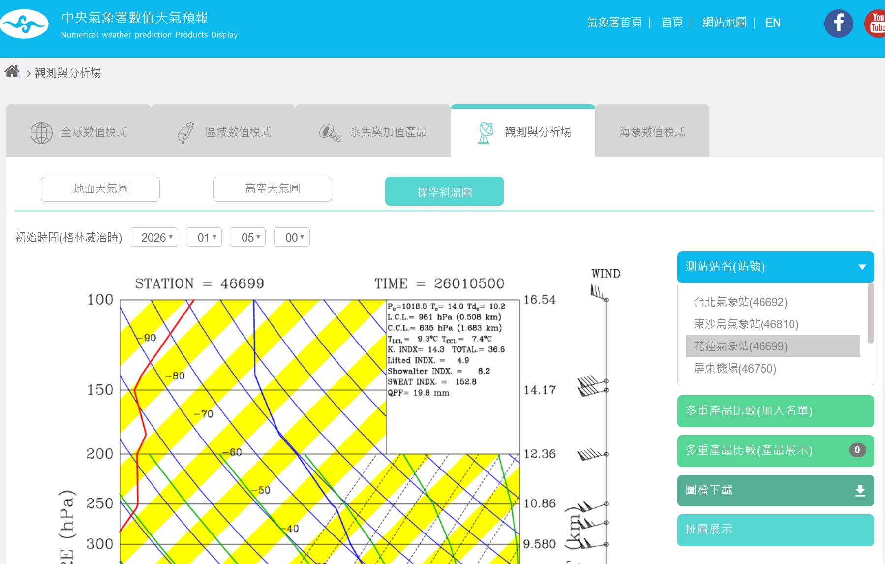 台灣目前的探空站主要有板橋、花蓮、屏東等。對於想追高山雲海(如合歡山、阿里山、太平山)的朋友,建議優先參考「花蓮氣象站」(代號 46699)的數據。