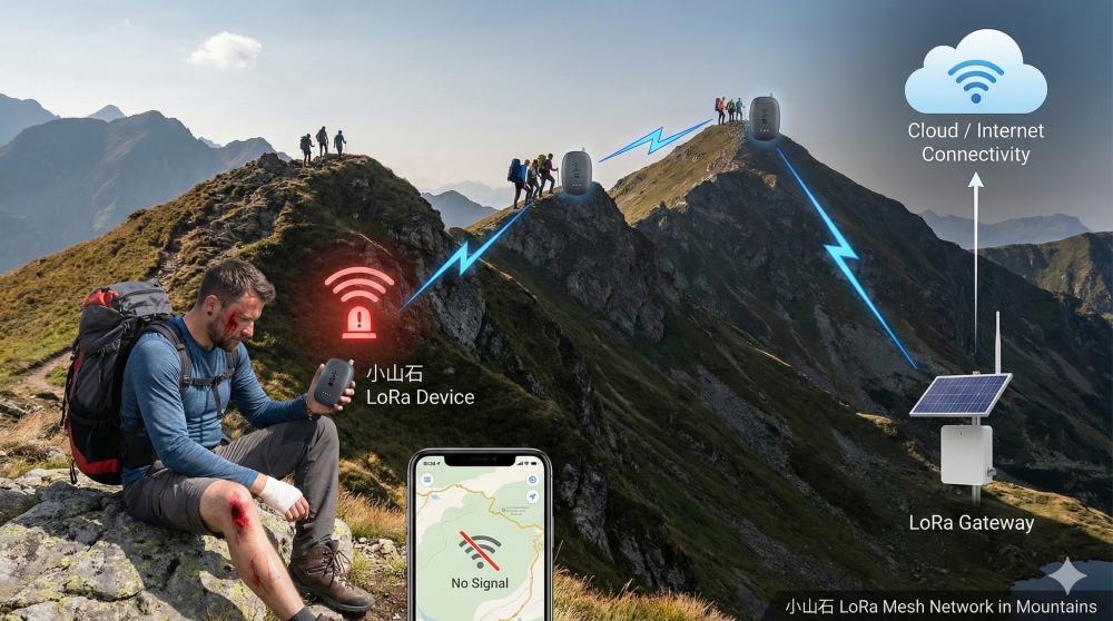 LoRa 是一種專為物聯網設計的通訊協定,它的特點是傳輸距離遠(在開闊山區可達數公里)、功耗極低、且穿透力強。更重要的是,它支援「Mesh Network(網狀網路)」架構。