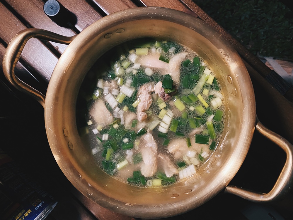 - 食材準備:去骨雞腿肉(一盒)、蔥(一把)、鹽巴、白胡椒、水