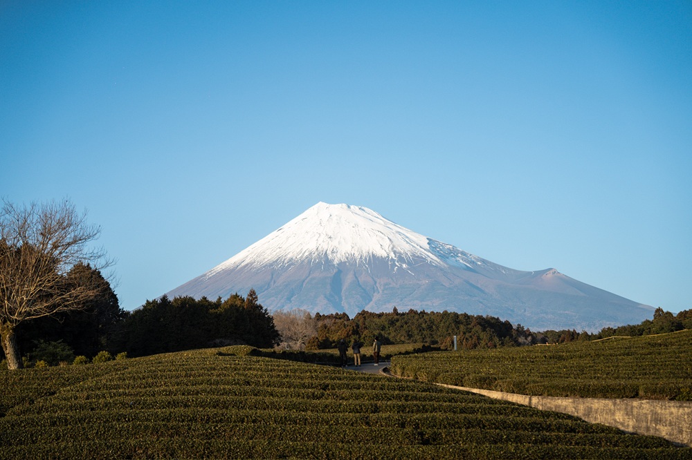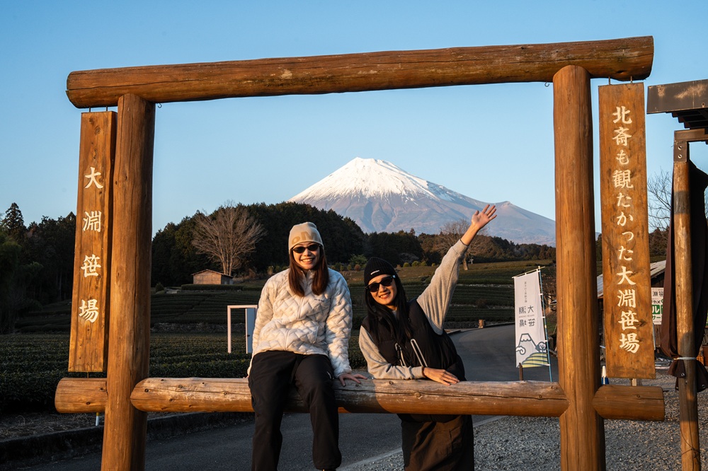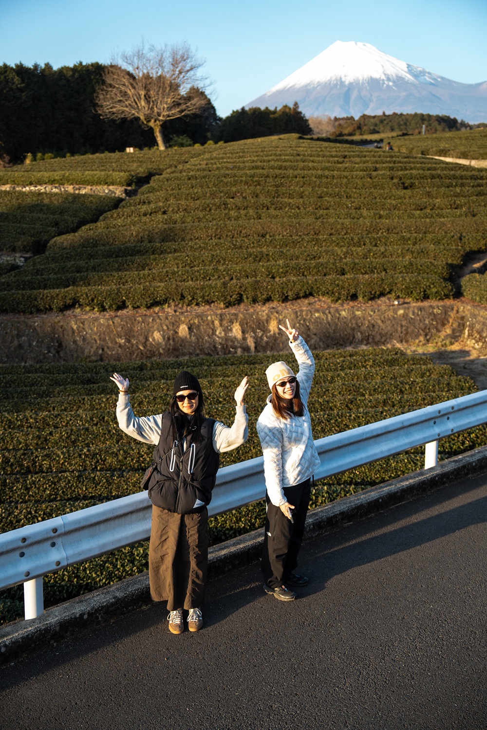 繼續向富士山腳前進,靜岡茶也是日本茶的一大代表品牌,身為日本茶葉之鄉,茶園隨處可見,但要找到一處完全沒有電線桿、沒有人工建物遮擋,且能與富士山正面同框的茶田,就非大淵笹場莫屬。