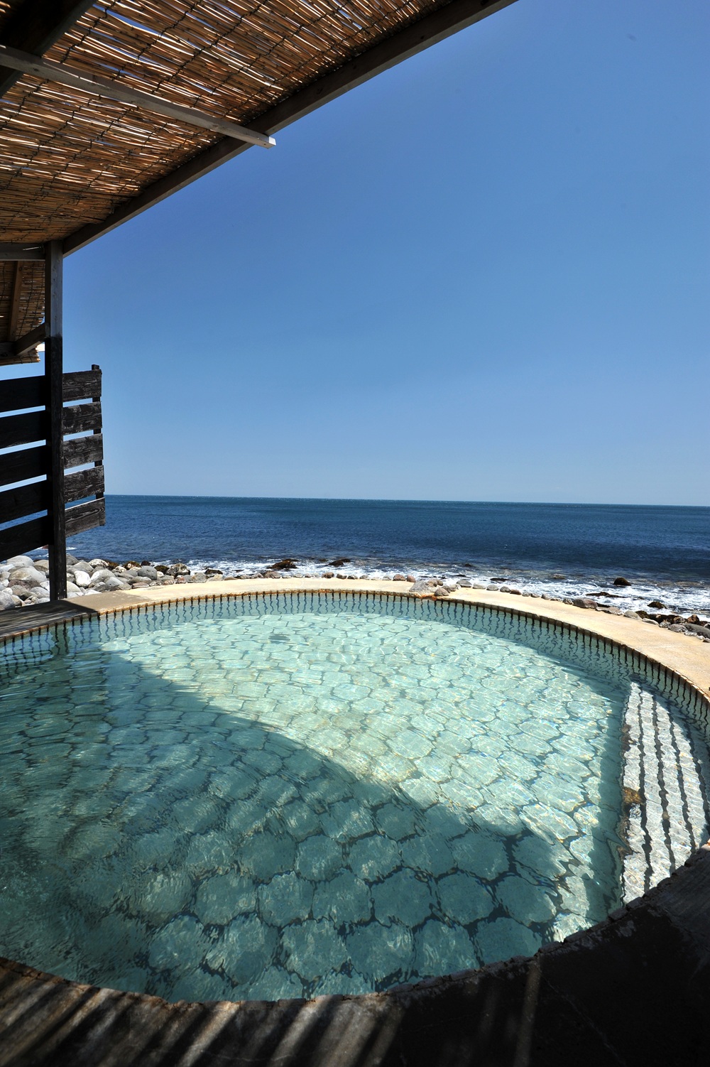 另外渡假村也設有泡湯設施,可以享受 42℃ 的溫泉(會添加一些水來調節溫度),號稱美容溫泉的熱水,因為它含有大量偏硅酸,是光滑肌膚不可或缺的天然保濕成分,浸泡在寬敞的大浴池中,俯瞰太平洋和波濤洶湧的海浪。