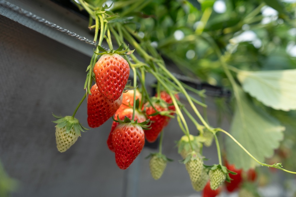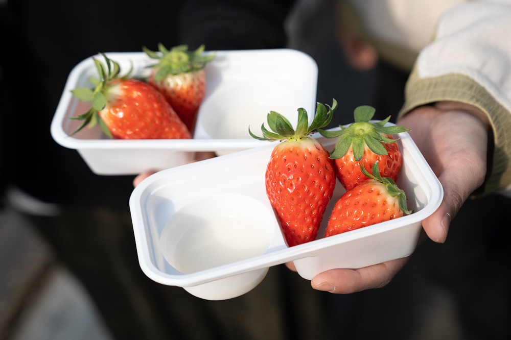 園內細心培育著兩大靜岡草莓品種,以大顆軟嫩、甜度極高著稱的「章姬(Akihime)」,以及擁有迷人香氣、酸甜層次豐富的「紅臉頰(Benihoppe)」兩種草莓,主打 30 分鐘現採吃到飽,會由農家親自接待,貼心準備好丟棄草莓蒂的盒子、煉乳及濕紙巾,雖然當天能採到哪種品種取決於當下的果實狀態,但無論是哪一種,都是農家們投入心血,用心栽植出的滋味。