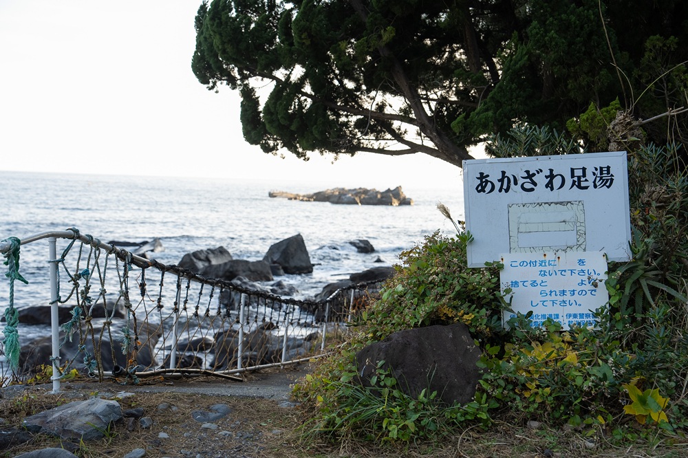 在前往熱川的途中,會經過一段蜿蜒的海岸線,這裡隱藏著一個名為 Akazawa Bay(赤澤灣) 的小角落。比起其他名聲顯赫的大景點,赤澤灣更像是一個「隱藏版秘境」,它不一定需要你特意排入行程,但若是在開車途中想停下來伸個懶腰、聽聽海浪,你可以帶上一杯咖啡,這裡會是一個合適的中繼站。