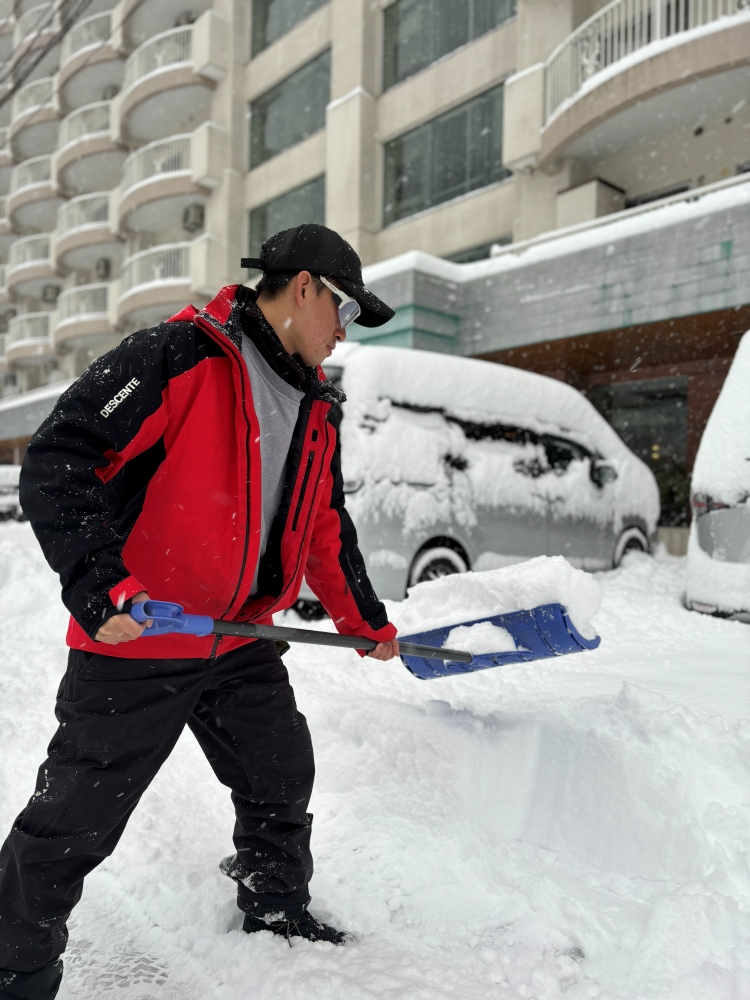 而回到生活面,等著教練的也不是泡湯與啤酒。每天早上 7 點半起床,第一件事不是喝咖啡,而是辛勞地拿起雪鏟鋤雪,奮力把被暴雪掩埋的車子挖出來。「一開始覺得很新鮮浪漫,後來覺得真的是滿累的。」