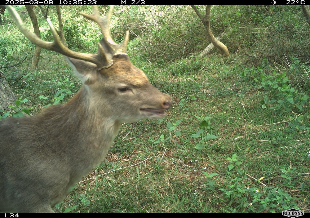 所有的汗水與泥濘,都在時間的流轉中結出了最動人的果實。當復育計畫進行到第二、第三年,何芫薇再次回到這片林地進行監測時,眼前的景象讓她徹底忘卻了當初的辛勞。「監測兩三年發現動物都回來了!」她的語氣中難掩激動與欣慰,「我甚至可以看到一群梅花鹿跑過去,還有食蟹獴停在溪邊玩水。」那片曾經被外來種盤據的土地,如今已經長成了生機盎然、提供多樣野生動物庇護的棲地。