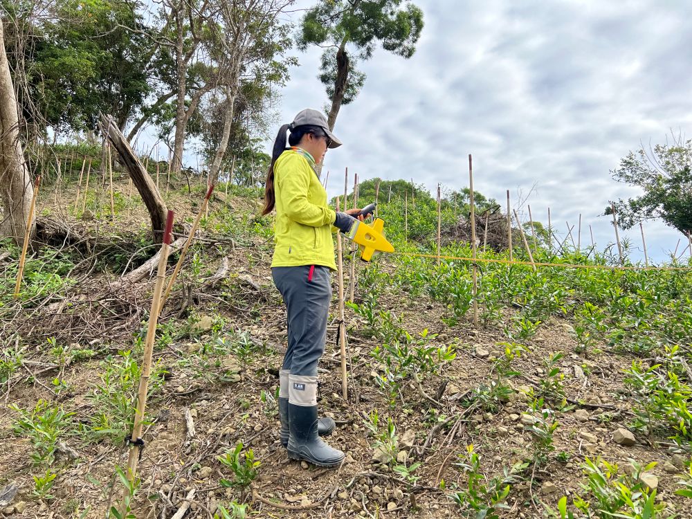 但計畫再周詳,終究得過老天爺那一關。「造林需要看老天爺臉色,需要降雨,所以梅雨季前就要整好地、種下去。」何芫薇道出了與時間賽跑的龐大壓力,為了確保幼苗能順利存活,「每十米做阻隔帶,加強排水、減少水土衝擊」,每一個細節都是對抗極端氣候的苦心。