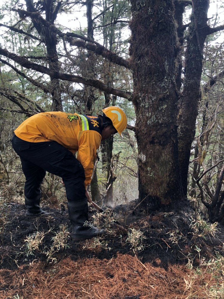 在八年的森林護管員生涯中,大自然曾兩度以最極端的面貌,讓田宇倫體會到生命的渺小與脆弱。第一次是 2021 年玉山國家公園八通關杜鵑營地的森林大火。那原本是一個平凡的休假日常,田宇倫正悠閒地在部落與長輩喝酒聊天,突然一通緊急集合的電話打破了歡快的氣氛。「不能明天嗎?」他錯愕地問,但災情不等人,他隨即放下酒杯,投入這場打火任務。