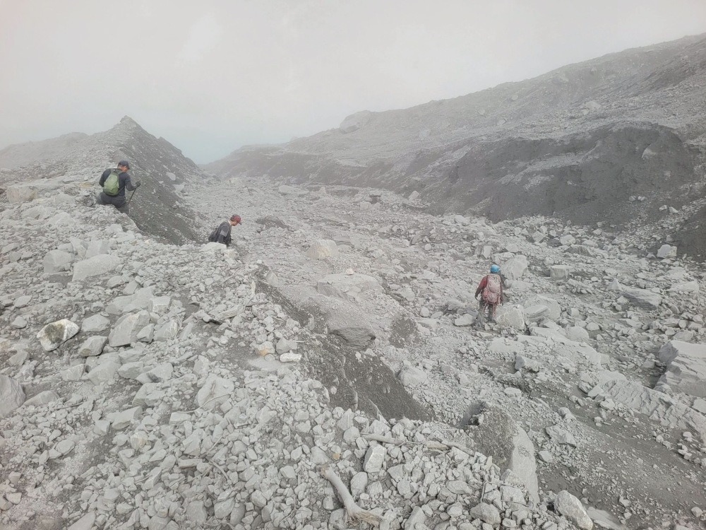 如果說玉山大火是狂暴的猛獸,那麼去年馬太鞍溪堰塞湖面臨潰堤危機時的探勘任務,則是一場令人窒息的冷酷夢魘。為了評估未來是否能架設監測器以取代每日的人工無人機飛巡,田宇倫接下了挺進堰塞湖的艱鉅任務。團隊將營地紮在海拔 1,800 公尺的光復林道 16K 處,每天晚上都在討論該如何往下推進,最終必須下切 800 公尺抵達湖畔。