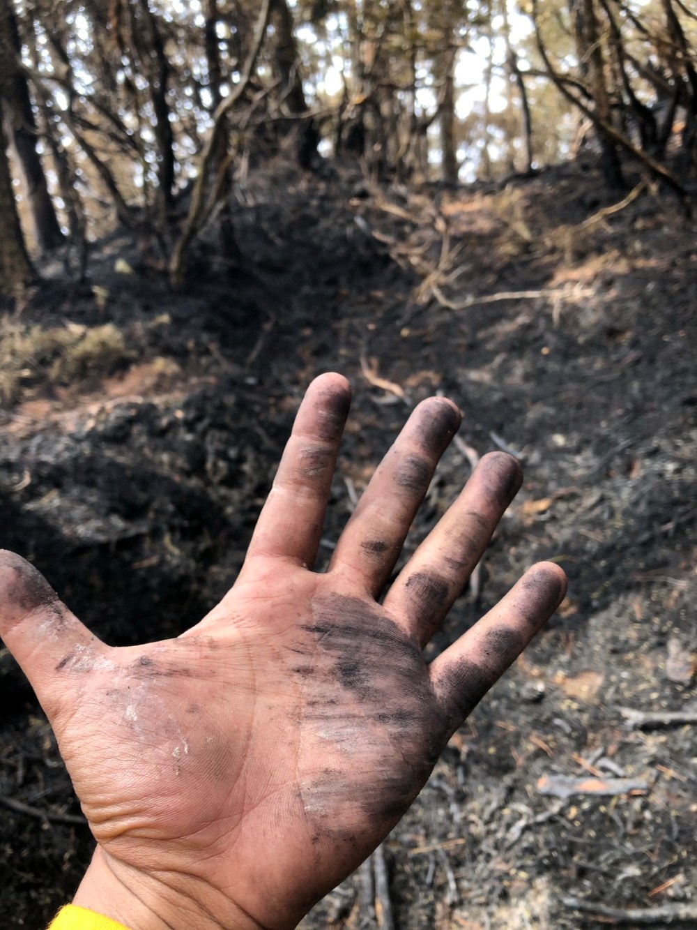 由於天候惡劣,直升機無法起飛支援,他們只能背負著重達 30 公斤的裝備,徒步向火場挺進。那天他們從下午四點一路狂飆至晚上九點,隔日清晨望見對面山頭不斷竄出的濃煙,田宇倫心裡不禁苦笑:「我們真的要走那麼遠到那邊喔?」無奈與極度的疲累交織,但腳步卻未曾停下。
