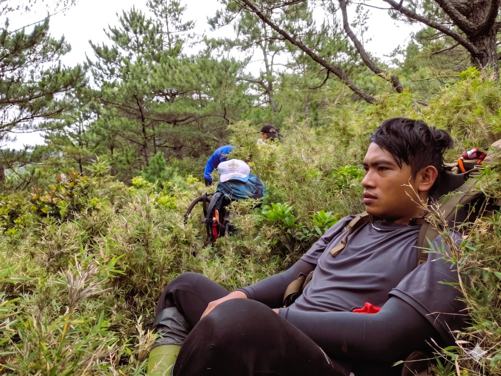 曾經,他在萬里桐的湛藍海水中引領遊客探索珊瑚礁;如今,他背著 30 公斤的重裝,穿梭在花蓮的險峻山林間。