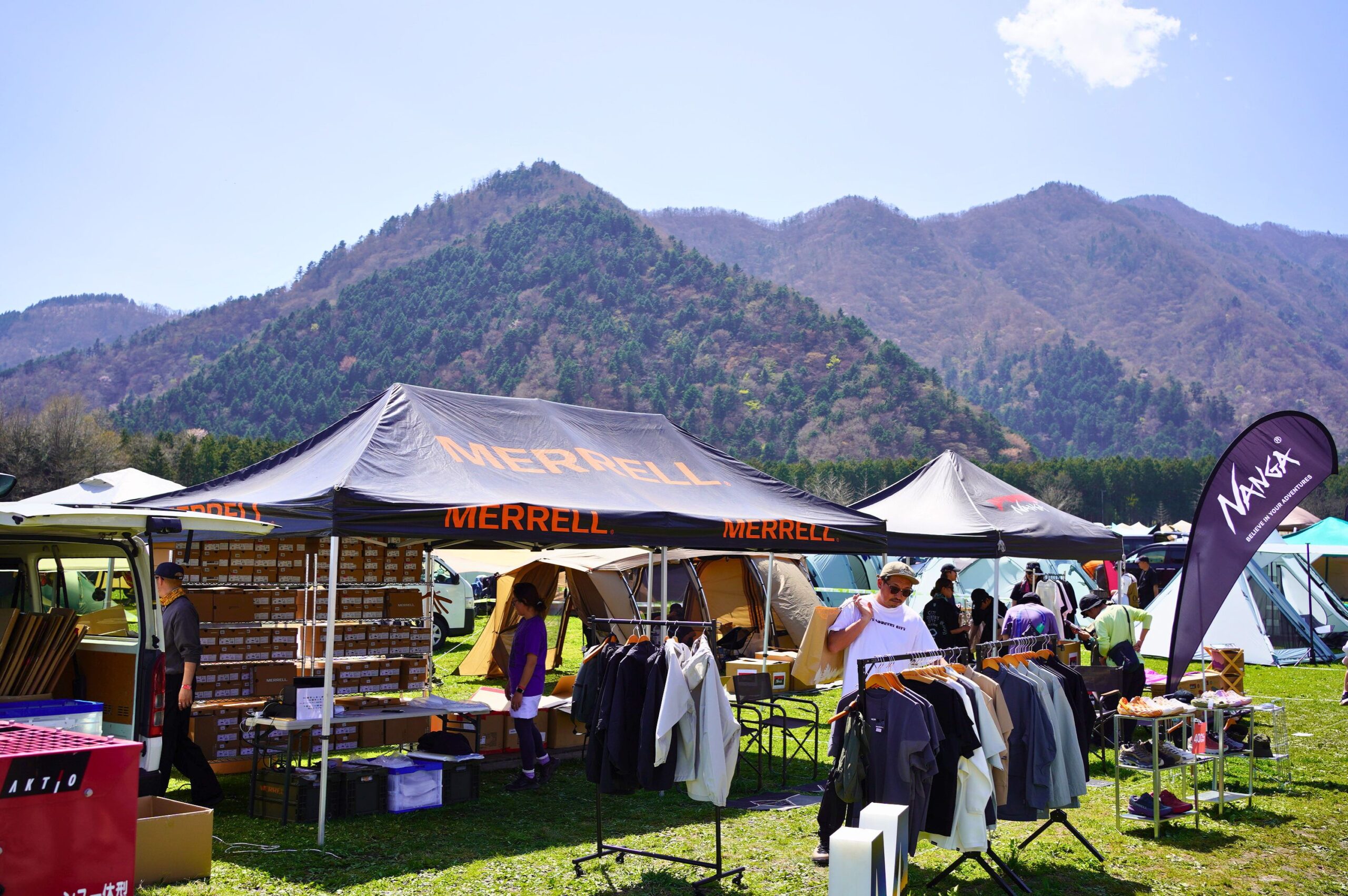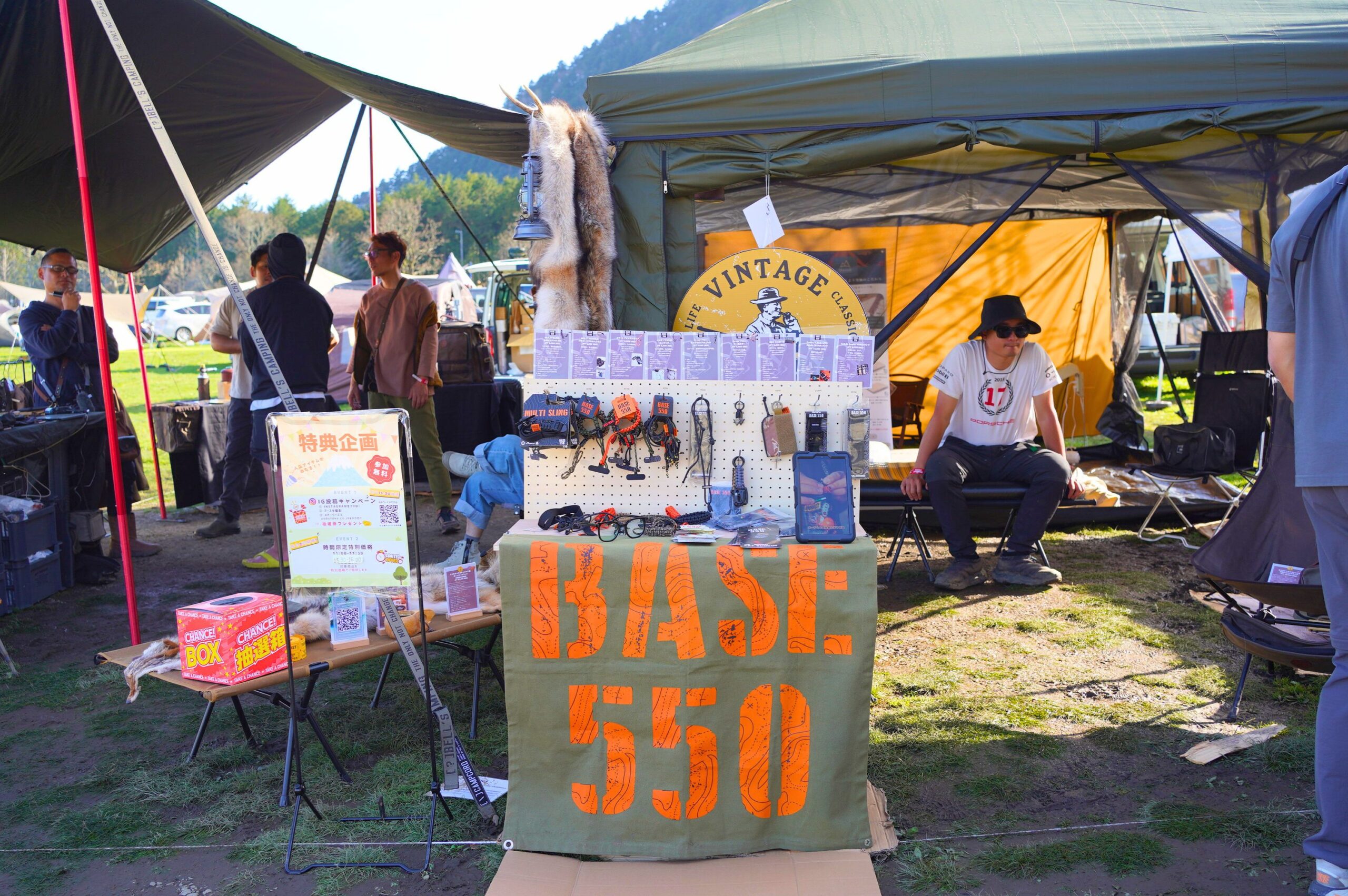在品牌大道的另一側,這次也能看見來自台灣的戶外選品店老獵人與 Base 550 現身出攤。能夠在富士山腳下,與日本各地集結而來的戶外品牌並肩展出,也讓人感受到台灣的戶外風格正在慢慢邁向更大的戶外市場。