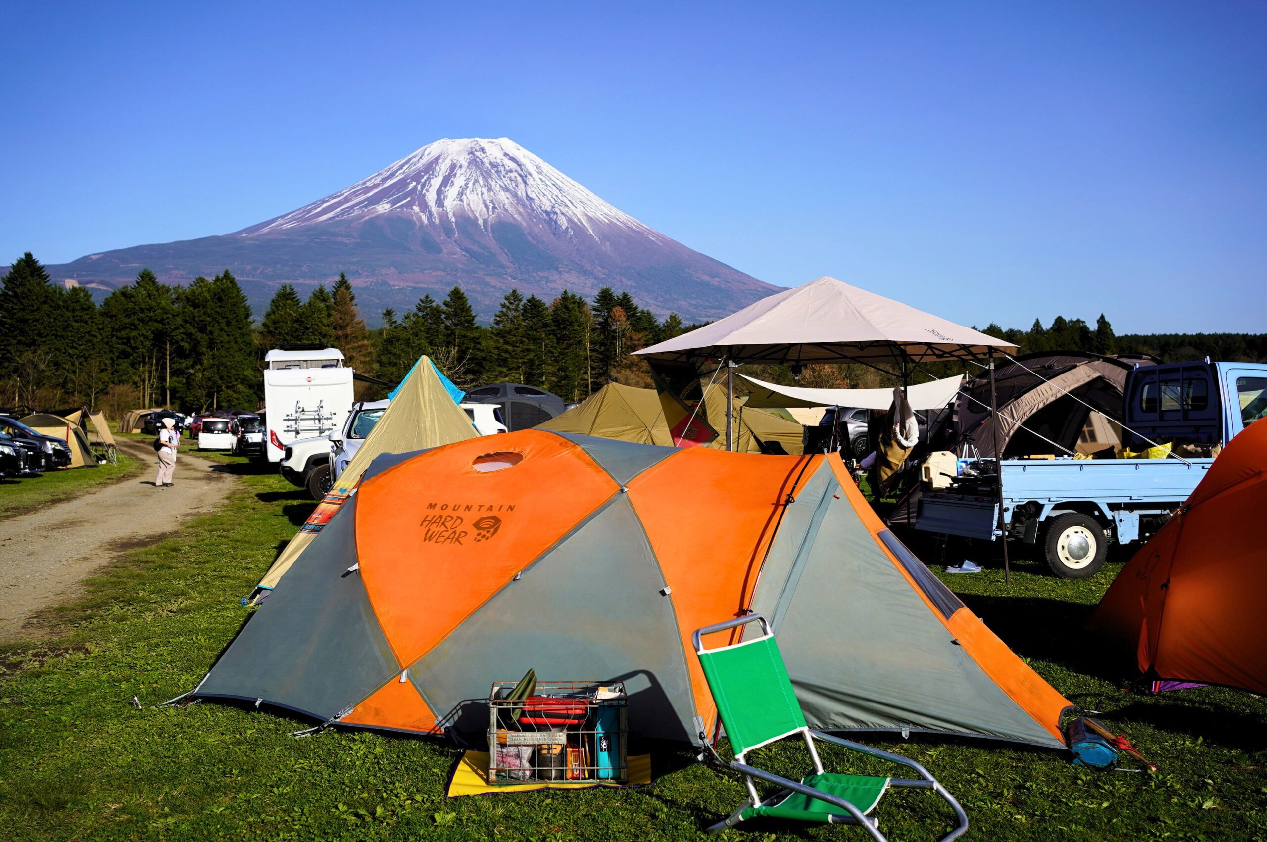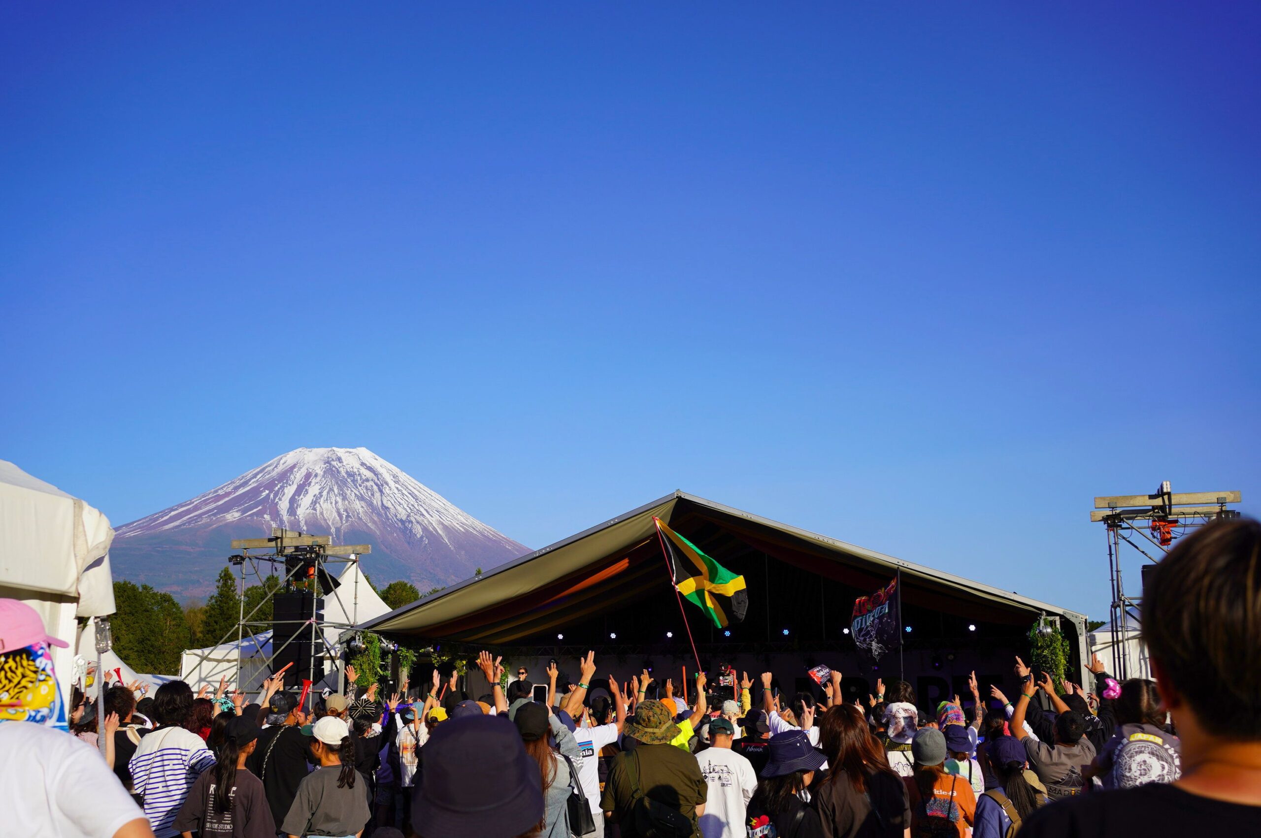 今年抵達會場的週五,迎接大家的就是一場毫不客氣的傾盆大雨。不過隨著夜幕降臨,雨雲也逐漸散去,相較於去年的氣候,今年受到老天眷顧,週末兩天富士山麓皆迎來最高氣溫超過 20°C,近乎萬里無雲的晴朗天氣。