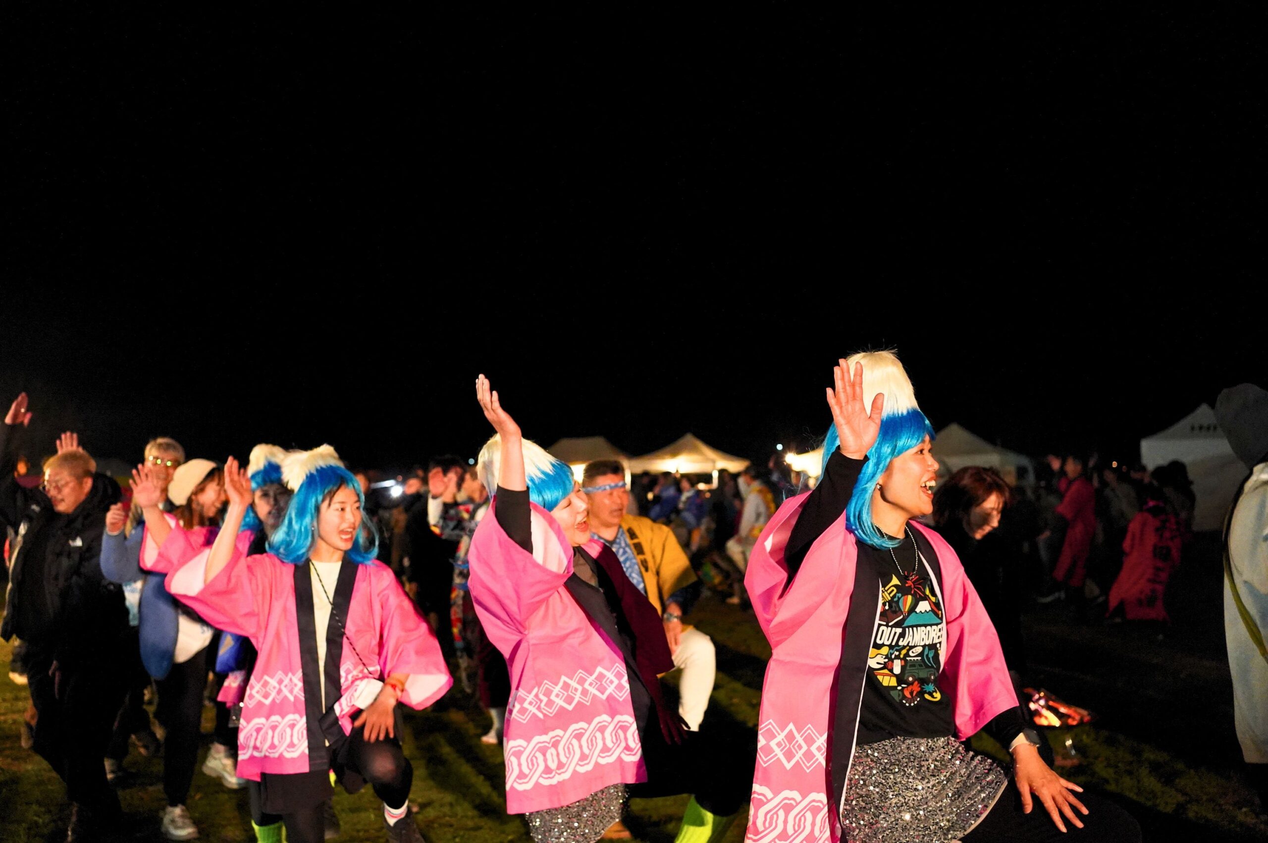 特別值得一提的是週六夜晚,由富士宮傳統舞蹈「宮おどり」與四星球帶來的合作舞台。看著不分大人小孩都隨著旋律載歌載舞,那種露營祭典特有的溫馨氛圍,在熱鬧之餘更顯動人,成為當晚最令人難忘的溫暖記憶。