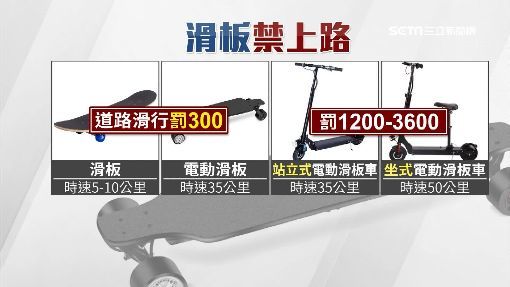 人力滑板違規罰 300 元,電動式的滑板罰 1200 元到 3600 元