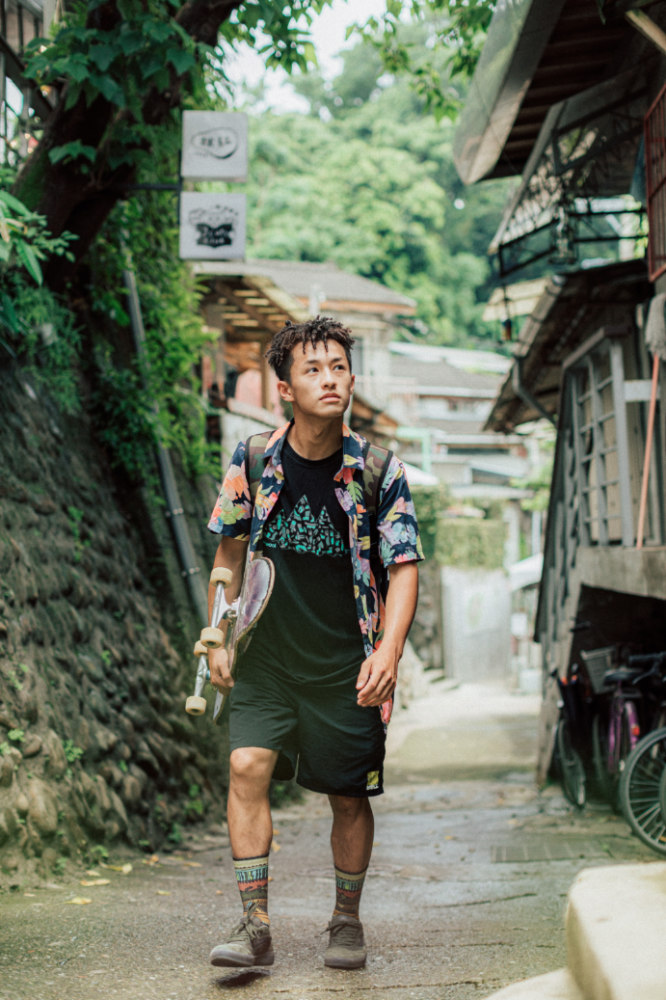 為了讓從小就離開台北移居高雄的家元感受台北的街頭、藝文氣息,我們特別選擇寶藏巖作為本次企劃的拍攝場地。家元乘著滑板穿過寶藏巖的蜿蜒巷弄,時而經過台灣藝術家們的塗鴉壁畫大作,與 Smartwool 春夏系列格外映襯。