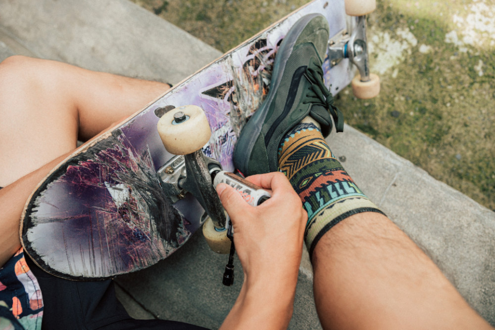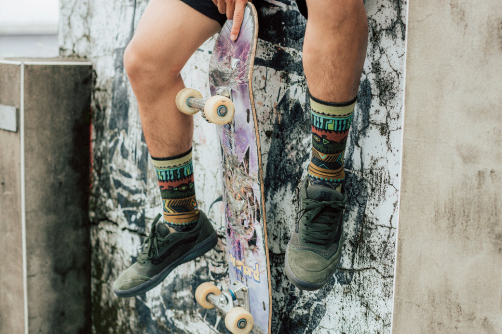 ▲Smartwool Lifestyle Print 日著襪,此為藝術家設計款,搭配滑板運動,藝術與潮流毫不突兀的融合在一起。