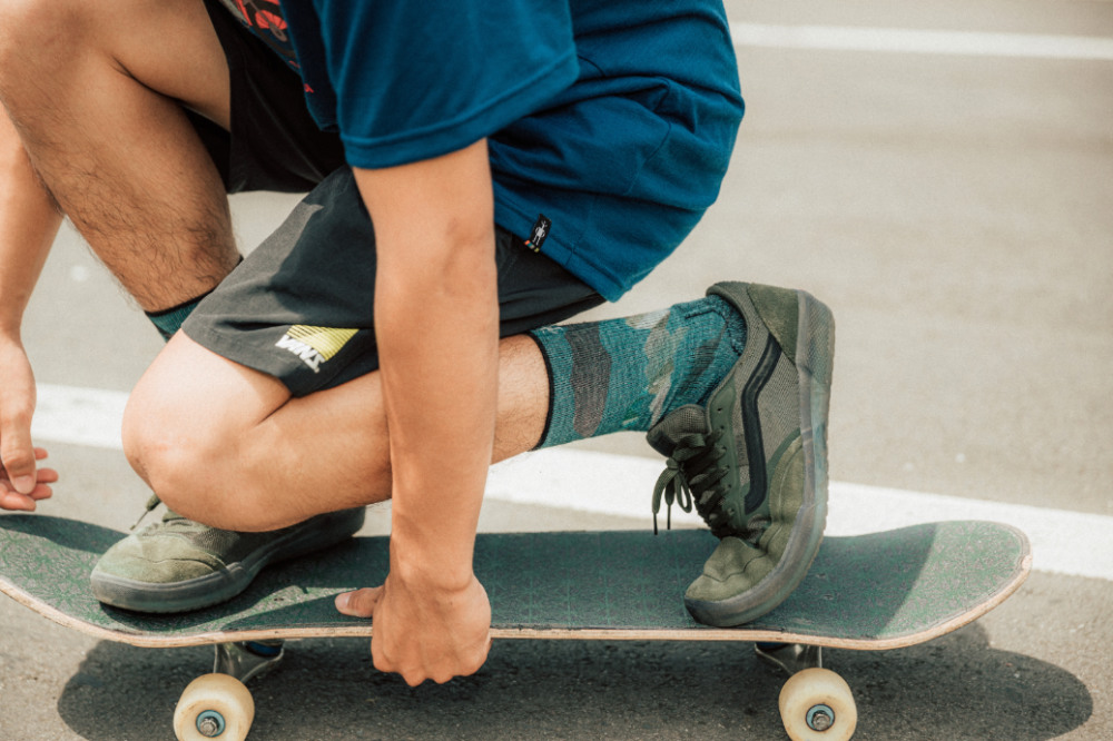 拍攝告一段落,我們請家元推薦幾款他覺得適合滑板玩家的襪子,他也特別挑出兩款,皆是中級避震設計,且獨特的設計還可以襯托出玩家的個人風格。家元補充說到,就他穿過 Smartwool 中級避震襪,他發現這個系列的全腳掌加厚設計可以提供有效的防護,而且 PhD 四向彈力伸縮合腳包覆科技,讓需要做特技的滑板玩家不用擔心襪子跑位影響表現。
