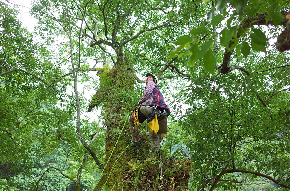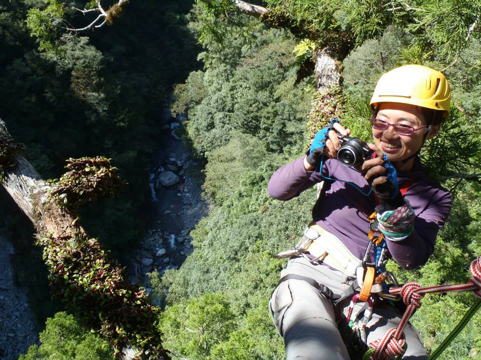 不過,攀樹仍舊是一項相當危險的運動,「有一次去探勘能高越嶺的台灣杉神木,繩子甩上掛點後,我們會做乘重測試,結果立刻感受到墜落感,表示那個掛點不堅固,這是我們最怕的狀況,如果人上去而枝條斷掉,後果不堪設想。後來我們才發現,原來那個掛點是一棵樹中樹,一棵長在高層樹冠的台灣雅楠就這樣被我們不巧拉下。」