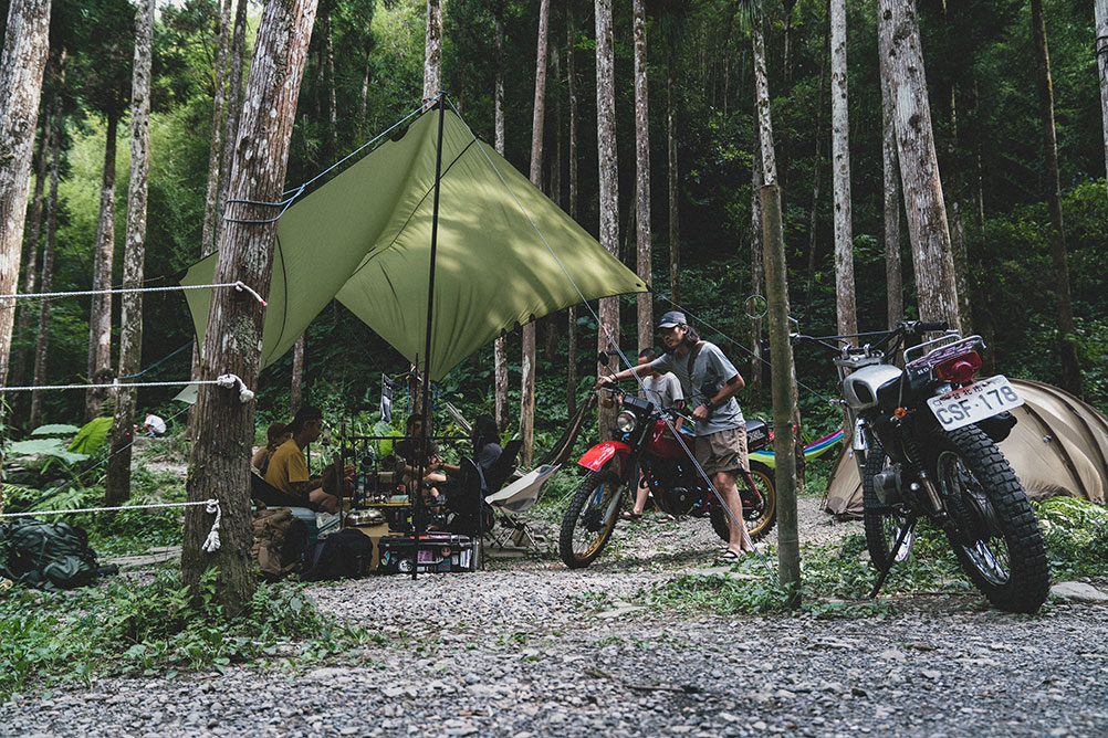 NANGA 帶著 2020 年夏季注目主打睡袋,與 Sonic Frog Motorcyclic 一起走到林間,體驗一場質感風格機車露營。